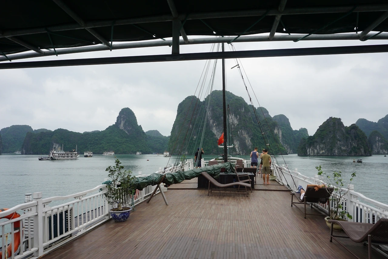 크루즈는 작은 섬과 기암괴석 사이를 지나치며 바다를 가로질렀다. 어머니와 나는 데크에서 하롱베이의 풍경을 한참이나 감상했는데, 역시 어머니의 기준엔 미치진 못한 모양이었다. TV로 볼 때가 더 좋았다나. 나 개인적으로는 날이 흐린 게 아쉽긴 했다. 화창했다면 TV로 볼 때만큼 좋았을지도 모르니까.