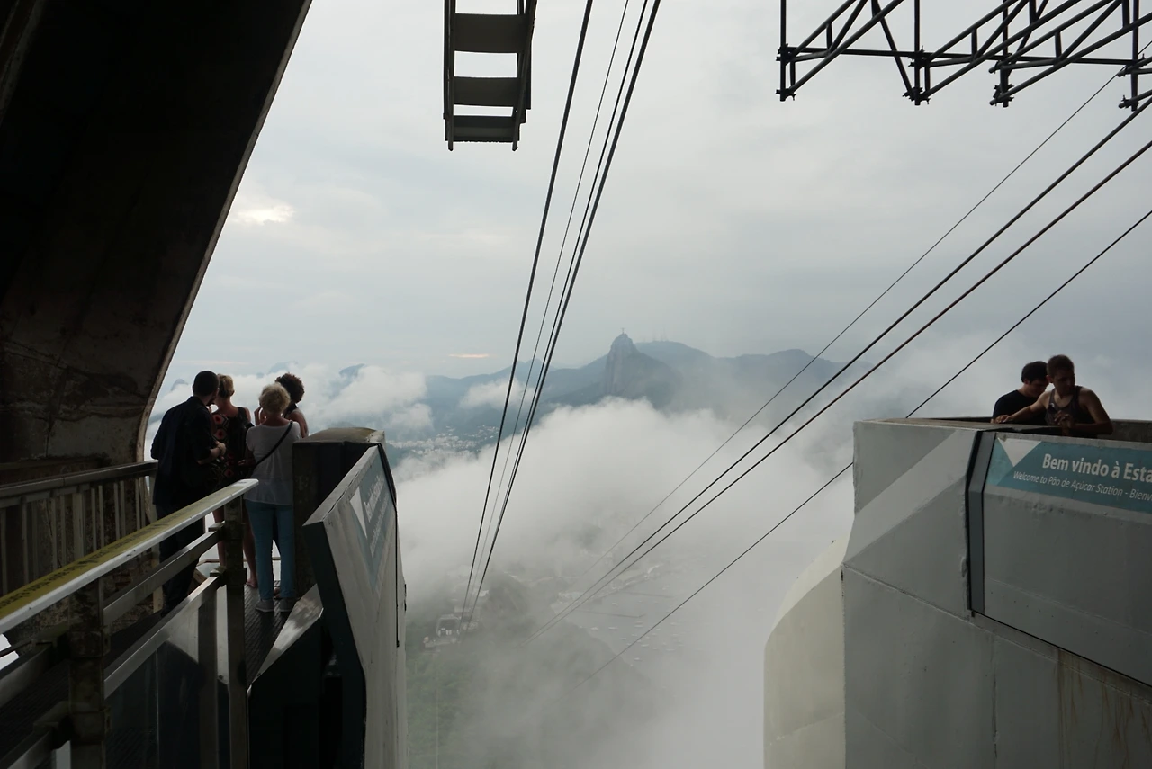 도착한 첫날이 특히 심했는데, 날씨마저도 살인적인 더위였다. 게스트하우스 벽에는 귀중품 도난과 같은 범죄에 주의하라는 문구가 쓰여 있었고, 게스트하우스의 10인실 도미토리는 나 빼고는 모두 건장한 남자. 그래도 남미 첫날이자 브라질 첫날이자 리우데자네이루 첫날을 공포에 떨며 보낼 수는 없었기에 기우를 다 떨쳐 버리고 팡지아수카르를 찾았다. 케이블카를 타고 올라간 전망대에서 바라본 리우데자네이루의 풍경과 저 멀리 코르코바두 예수상에 감탄하자마자, 바다에서 무럭무럭 피어오른 안개가 구름이 되어 순식간에 사방을 뒤덮는 거다. 경이로웠지만, 한 편 무섭기도 했다. 사위가 어두워지고 빗방울이 흩뿌리기 시작하니까 불안해졌다. 일몰 보려고 버티다가 거의 마지막 타임의 케이블카를 탔는데, 그때부터 천둥번개를 동반한 폭우가 쏟아졌다.