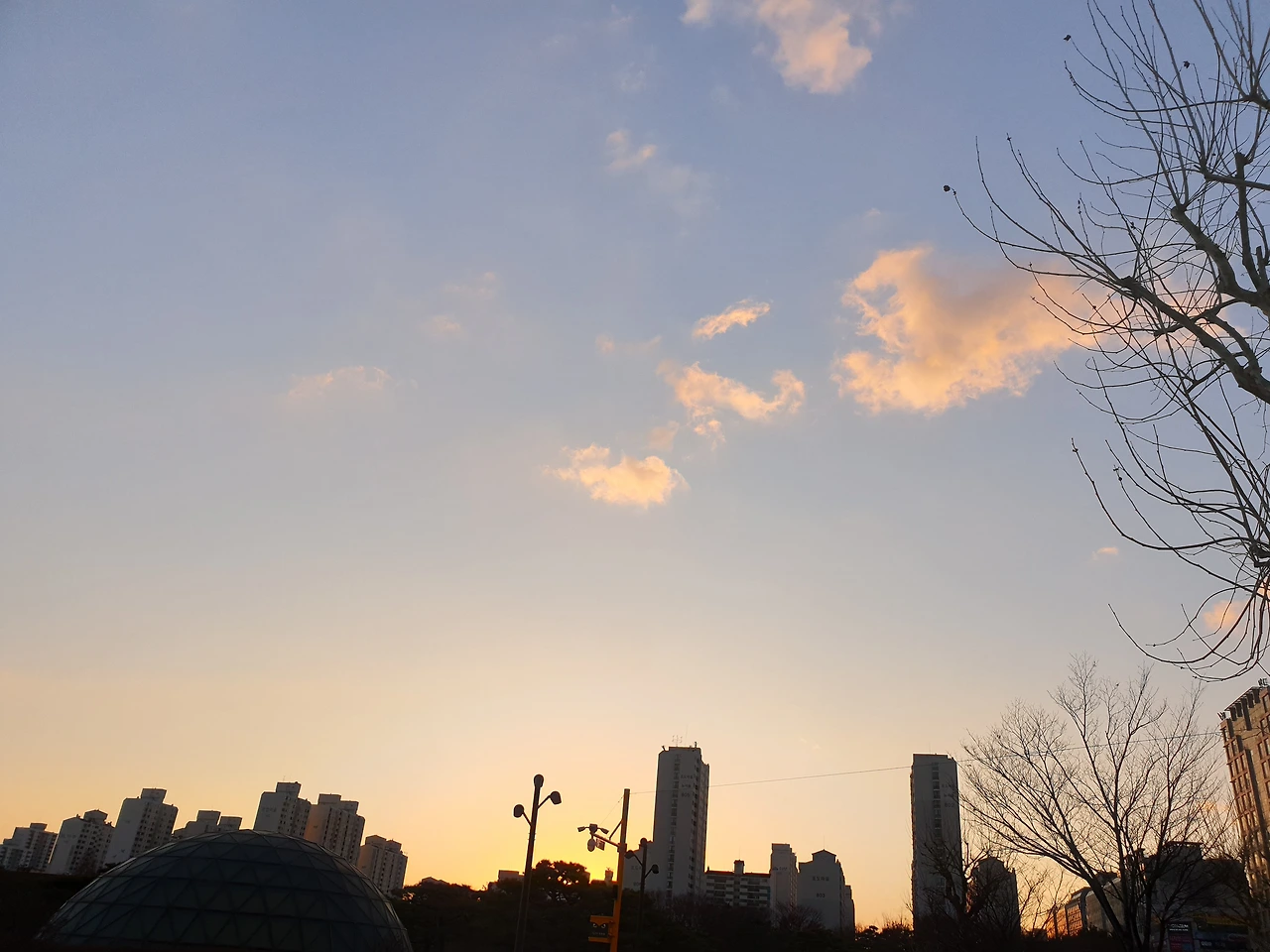 아파트 단지보다 더 잘 가꾸어진 공원 나무들은 울창하다. 나뭇잎 사이로 떨어지는 햇살이 아름답다. 흙을 밟으며 걸을 수 있는 길도 있다. 공원에서는 높은 아파트 건물들에 가려지지 않는 하늘도 더 잘 볼 수 있다. 공원 둘레를 따라 걷다보면 길 건너로 내가 다니던 중학교를 마주치게 된다. 건물 외관이 좀 바뀌었고 널찍한 운동장 한 쪽엔 전에 없던 건물도 들어서 있었다.