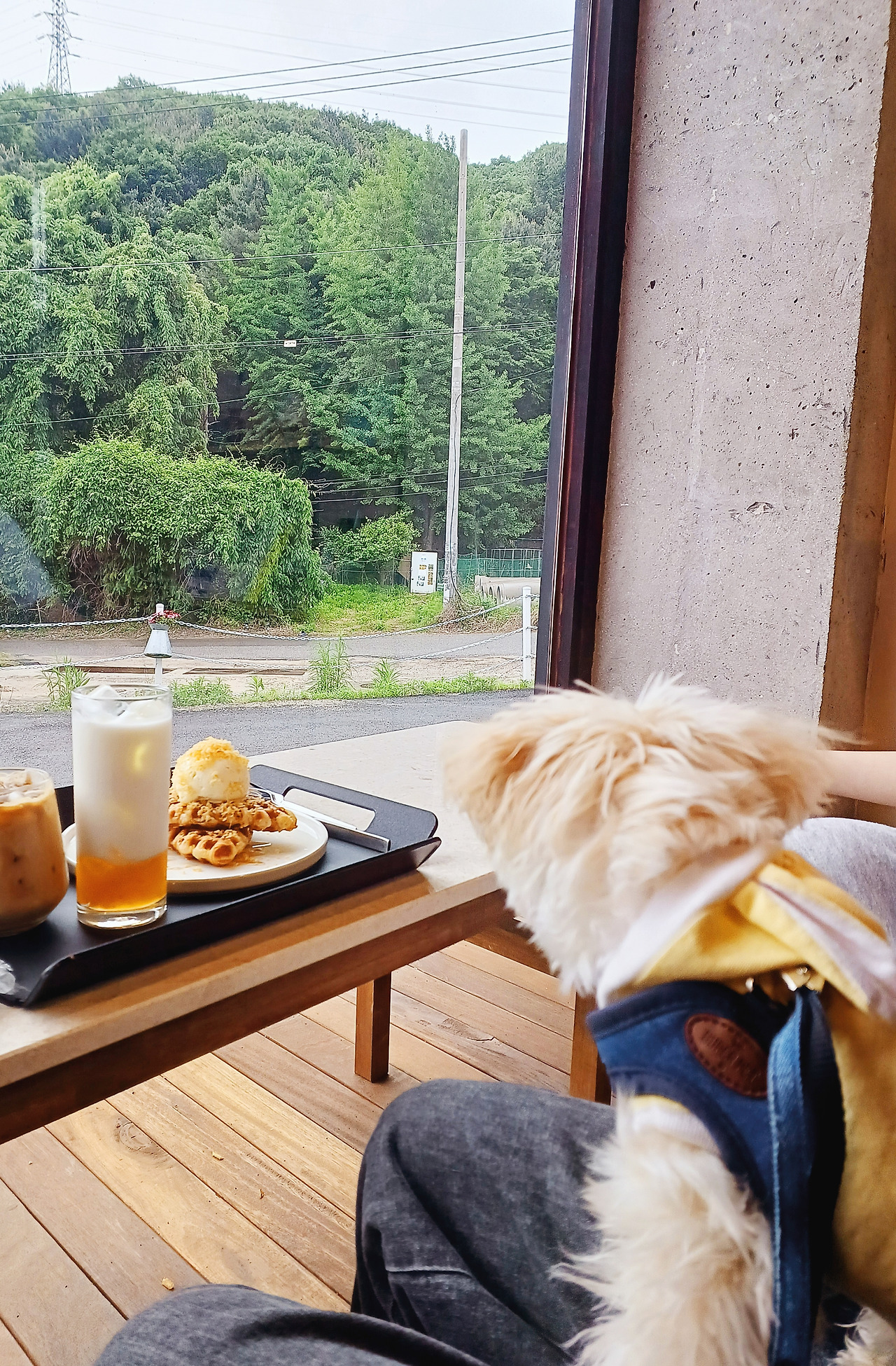 비 내리던 주말, 애견동반 가능한 카페에도 함께 다녀왔다.