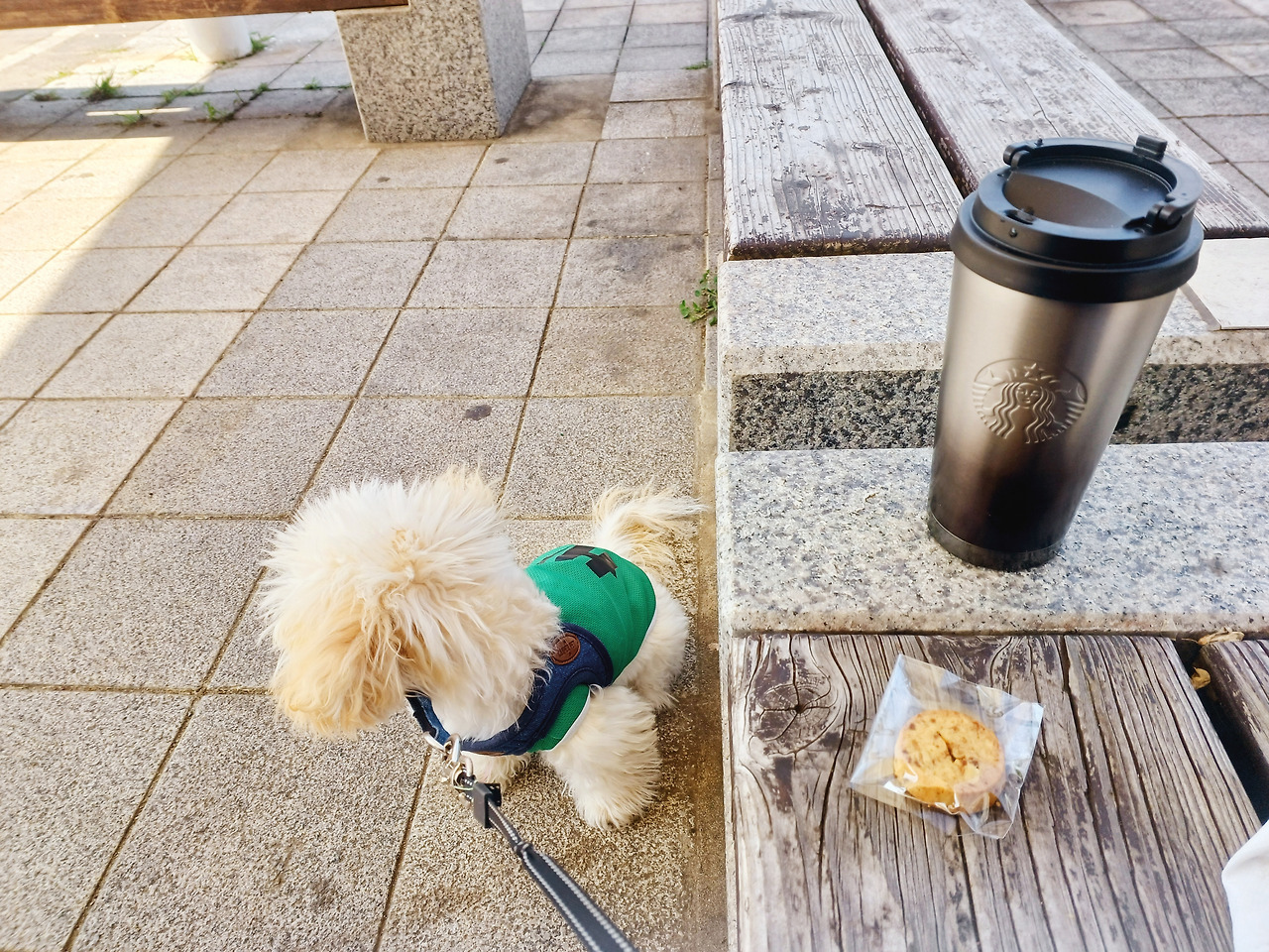 모든 아침 이렇게 함께 산책도 한다. 호두와, 커피 한 잔과 맑은 날씨는 힐링 자체다.