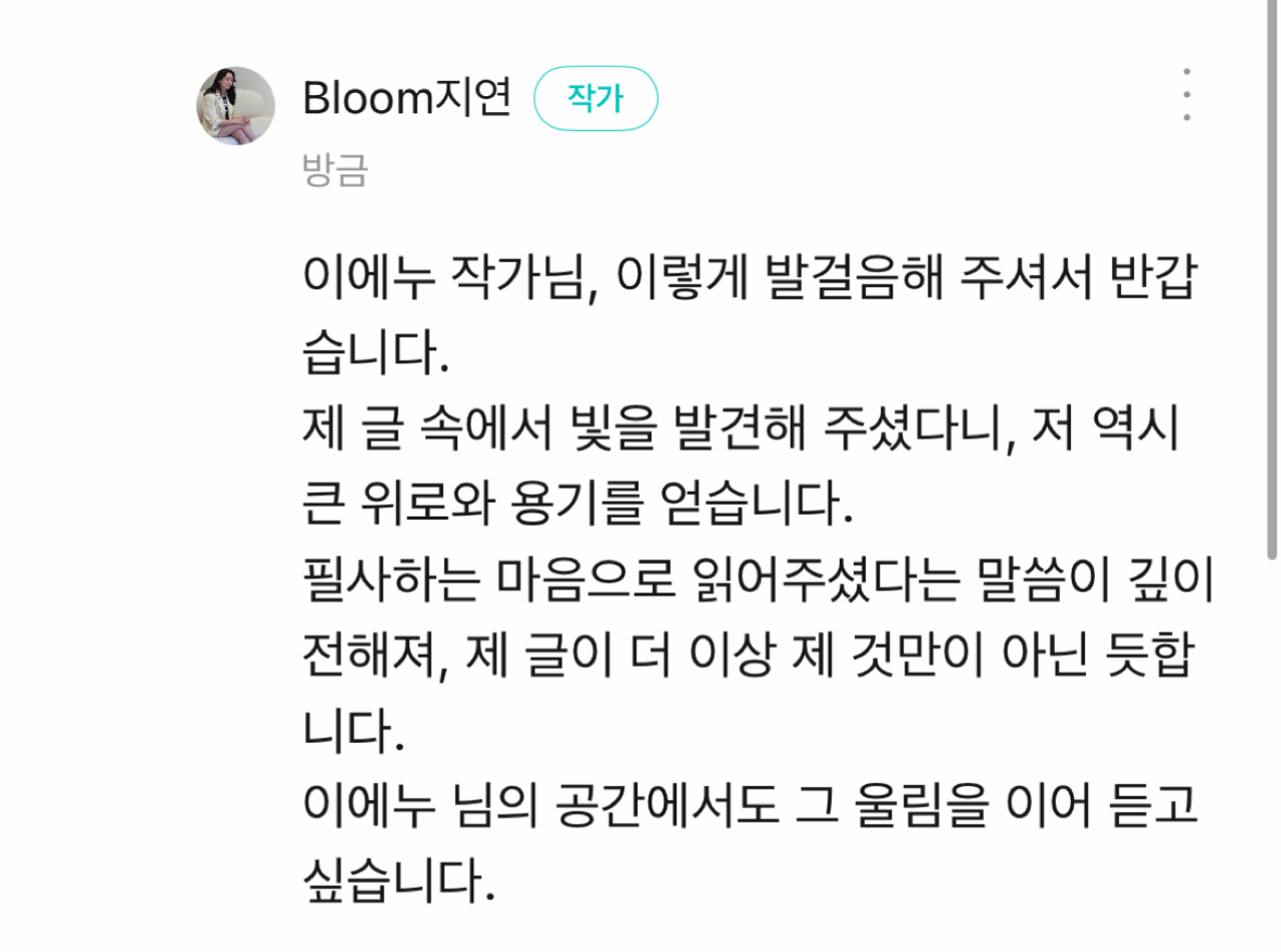다정한 한 줄의 댓글이었습니다.