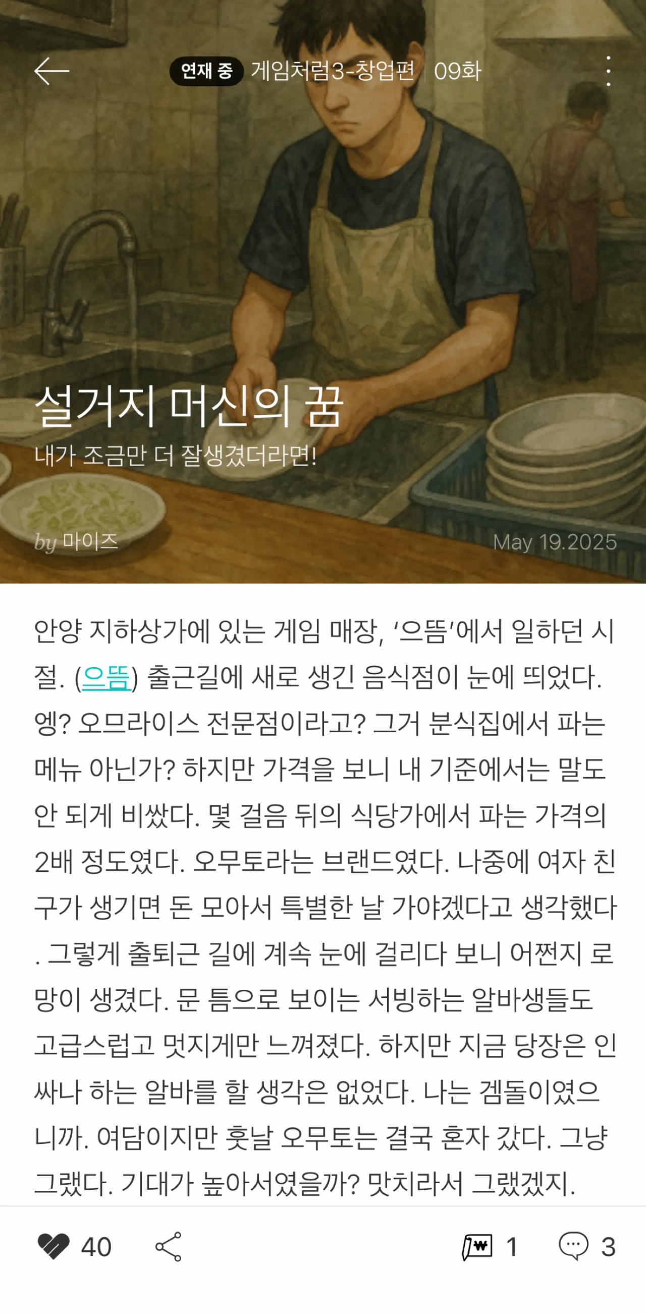 『설거지 머신의 꿈』 – 마이즈 작가님 글이에요.