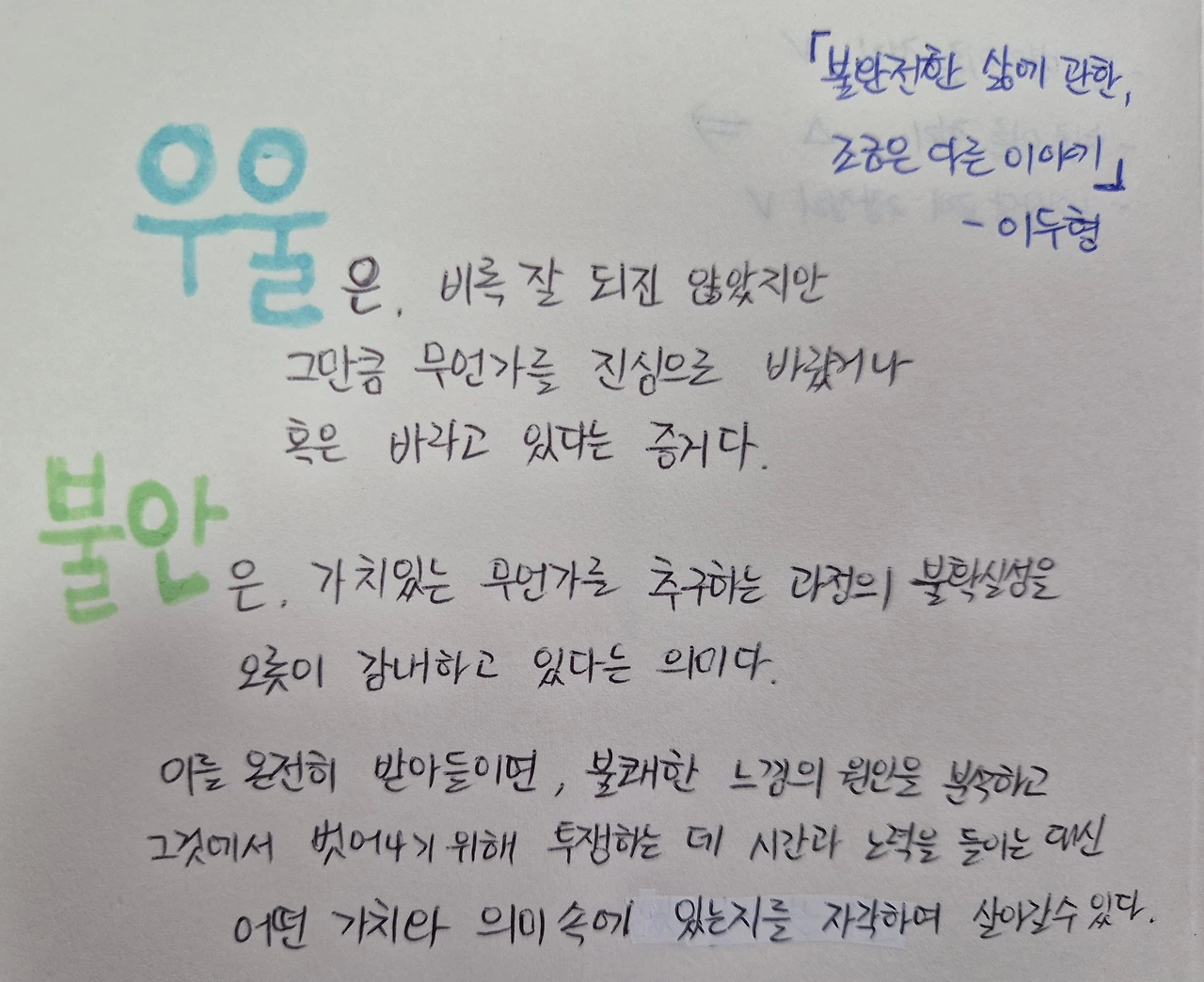 하지만 우울과 불안을 있는 그대로 받아들이기는 쉬운 일이 아니기에 이 책의 말과 같은 해석이 필요하다.