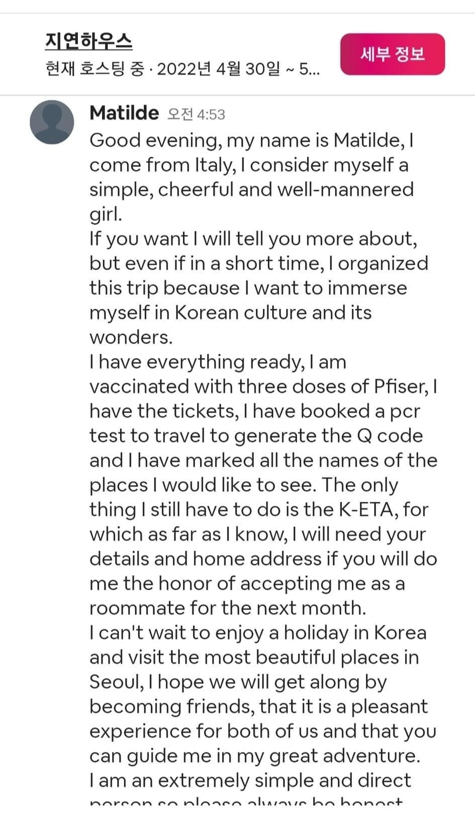 ※그녀는 2022년 4월 말에 방한했고 7월 초 귀국 예정입니다.