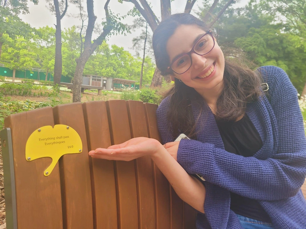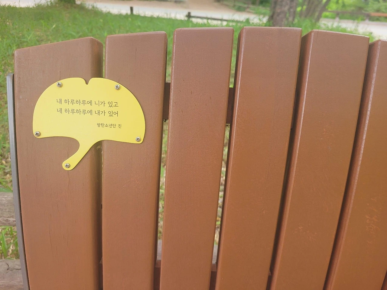 6. 서울숲 남준 벤치: 그들의 이름과 메시지가 적힌 벤치가 있음.