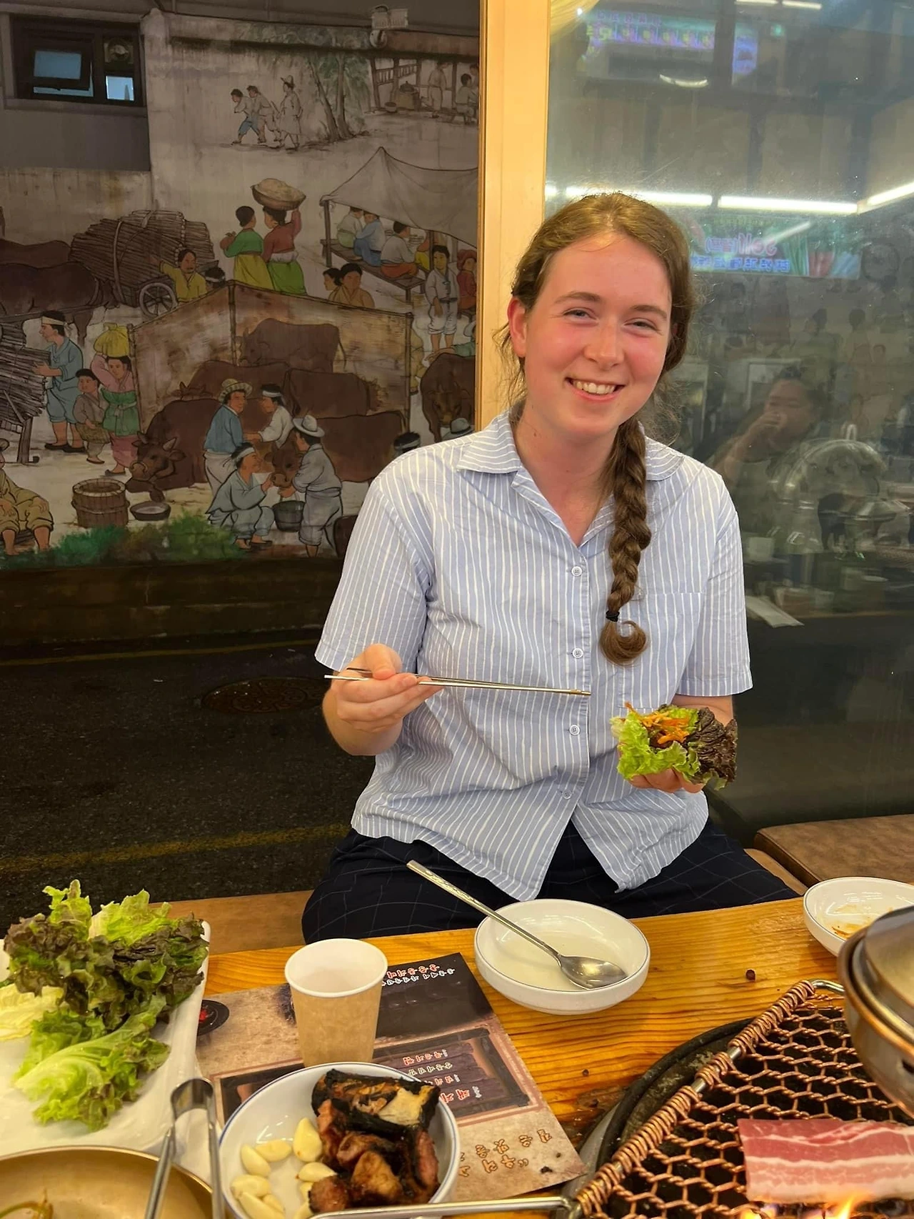 서울 구경 겸 드라이브도 시켜 주고 돼지갈비 집에 가서 코리안 비비큐 체험도. 고기 뿐만 아니라 동치미와 김치찌개를 너무 맛나게 먹어 데려간 사람도 보람을 느끼게 함. 맨날 편의점 인스턴트 음식으로 한국 음식을 곁다리로 경험한 그녀에게 제대로된 음식 먹이기 미션 완료.