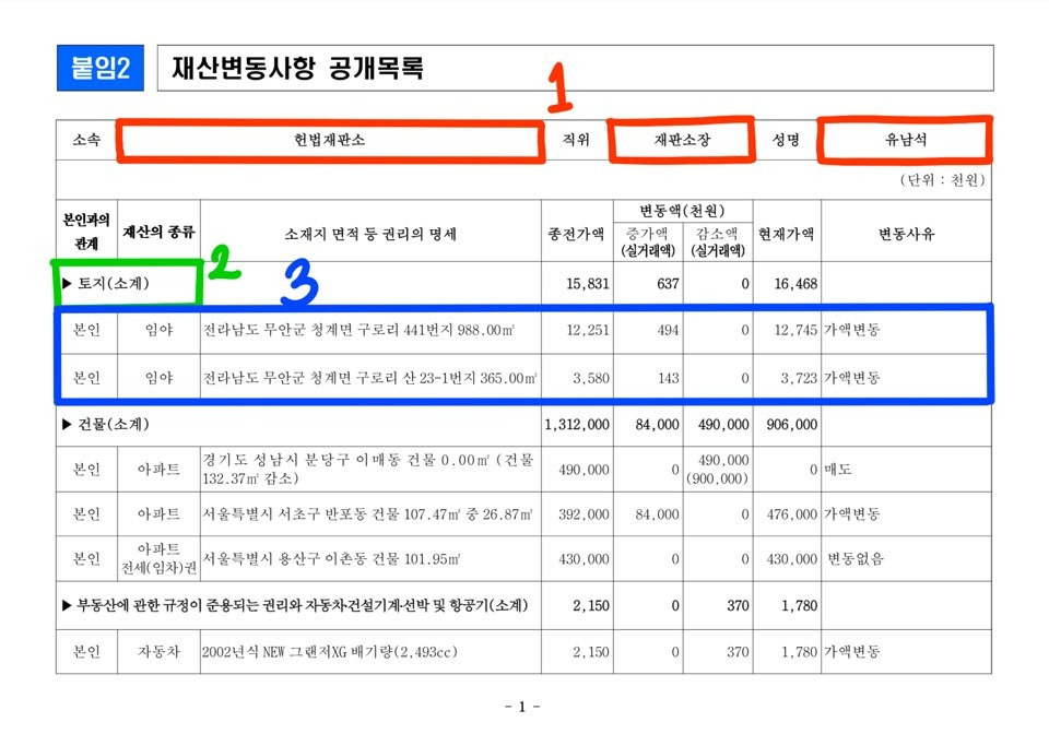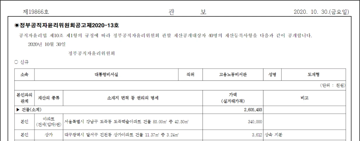 우선 이 pdf를 엑셀 파일로 변환했다. 무료 프로그램을 사용해서 그랬던 걸까. 위와 같은 관보를 엑셀로 변환하면 엄청 깨져버려서 쓸 수가 없었다. 대신 헌법재판소 재산 데이터를 이용해서 실습했다. 이건 안 깨지고 잘 바뀌더라.