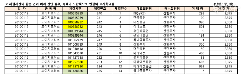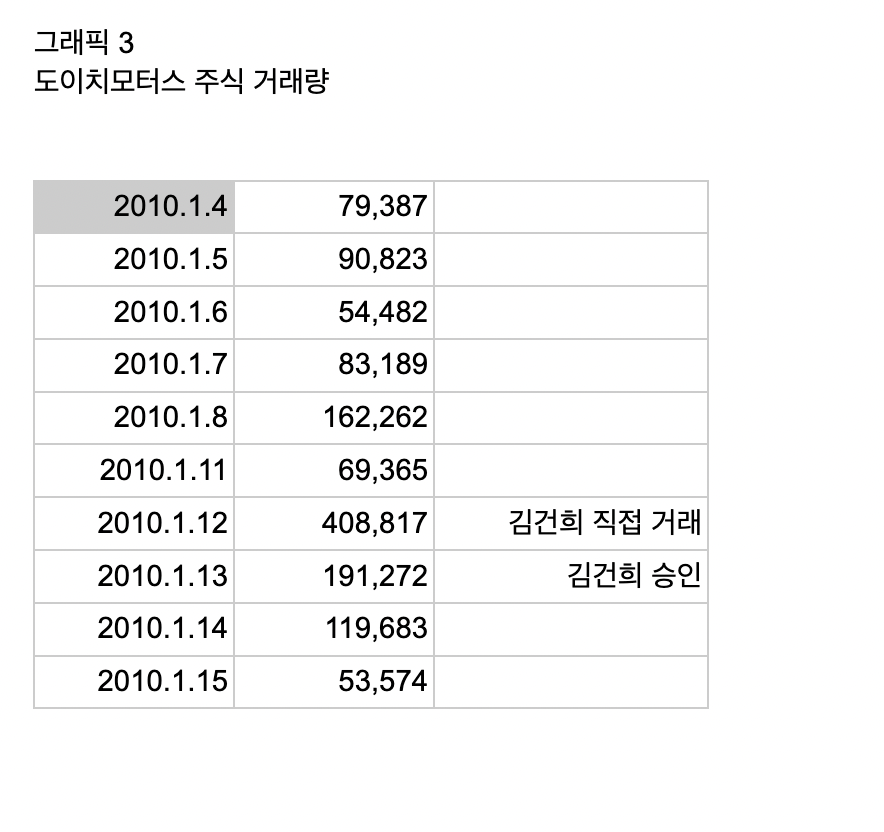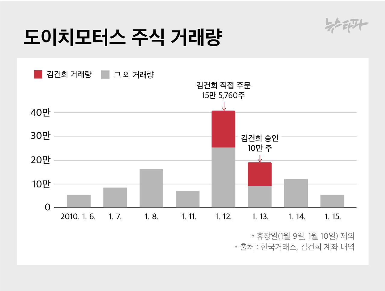 - 2010년 1월 12일 도이치모터스 주식 거래 비중