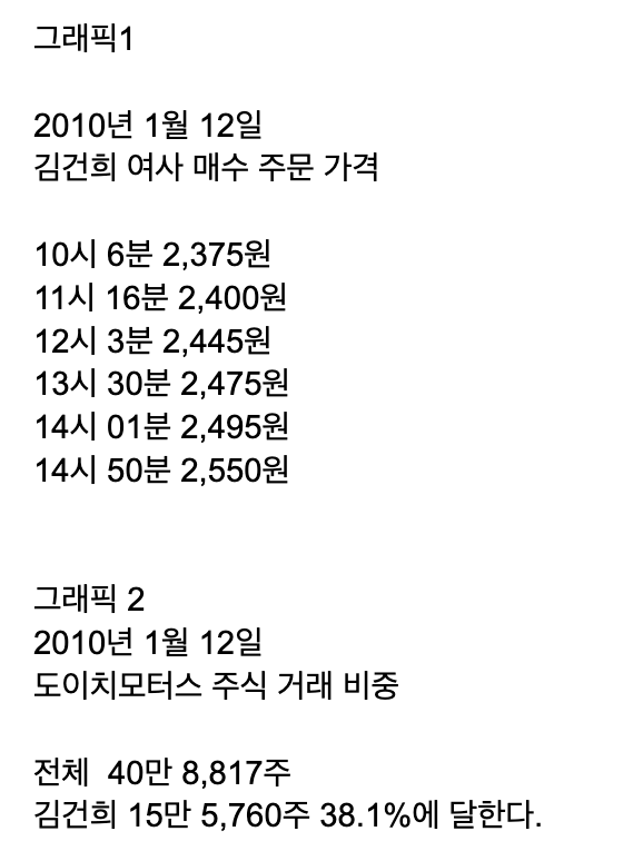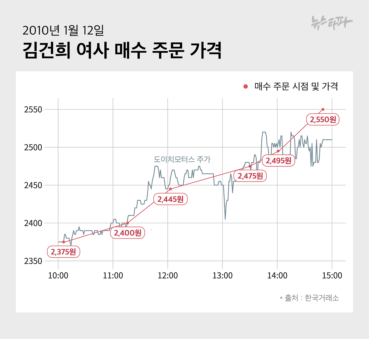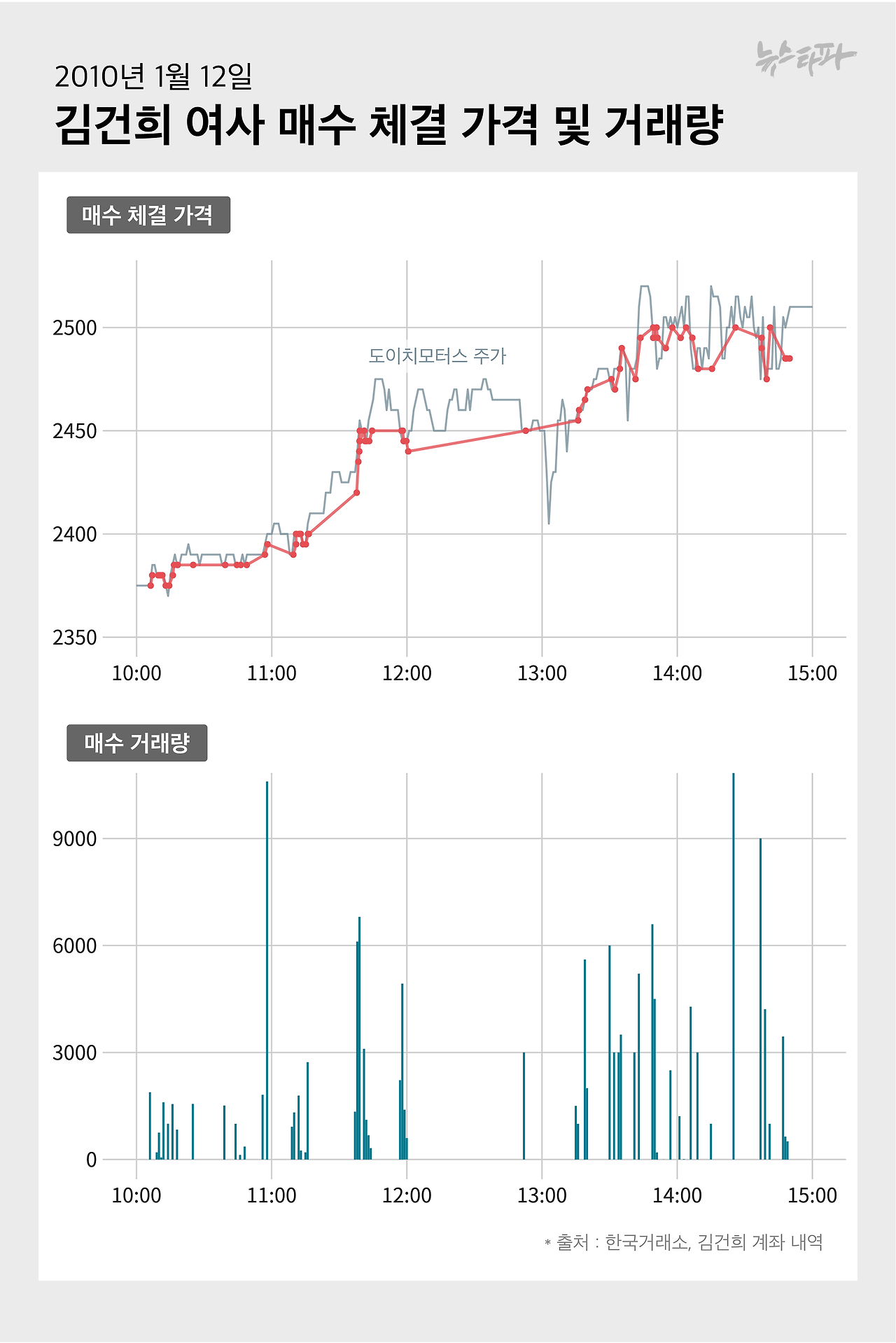 - 2010년 1월 12일 김건희 여사 매수 주문 가격