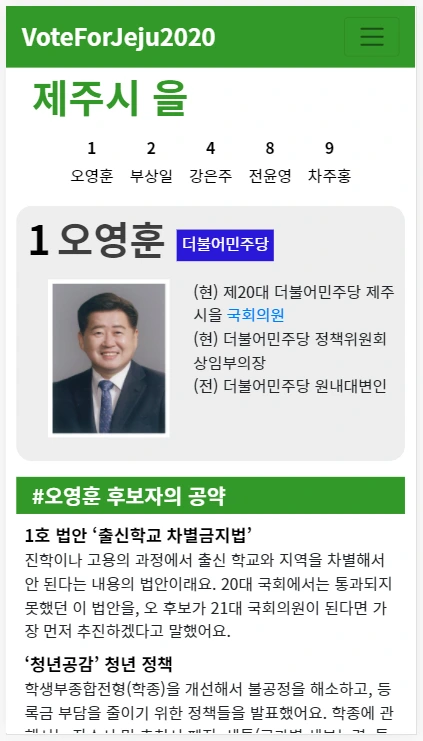 VoteForJeju - 제주도 밀레니얼을 위한 총선 사이트