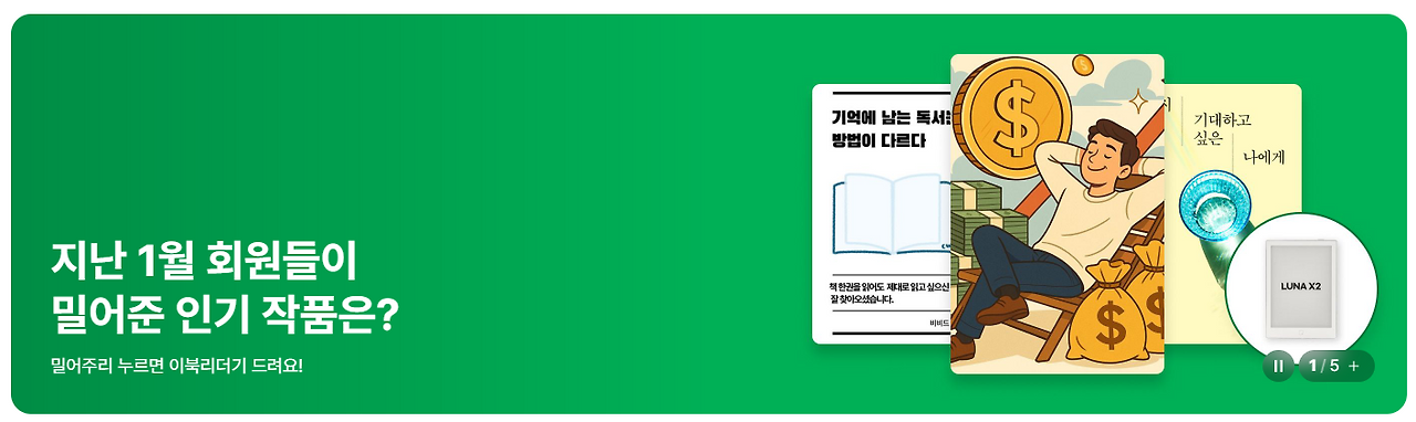 밀리의 서재 로그인 후 밀어주기를 하시고 이북리더기 이벤트에 참여해 보세요. 물론 저의 작품인 [기억에 남는 독서는 방법이 다르다]도 밀어주기를 해주시면 더욱더 감사드리고요.