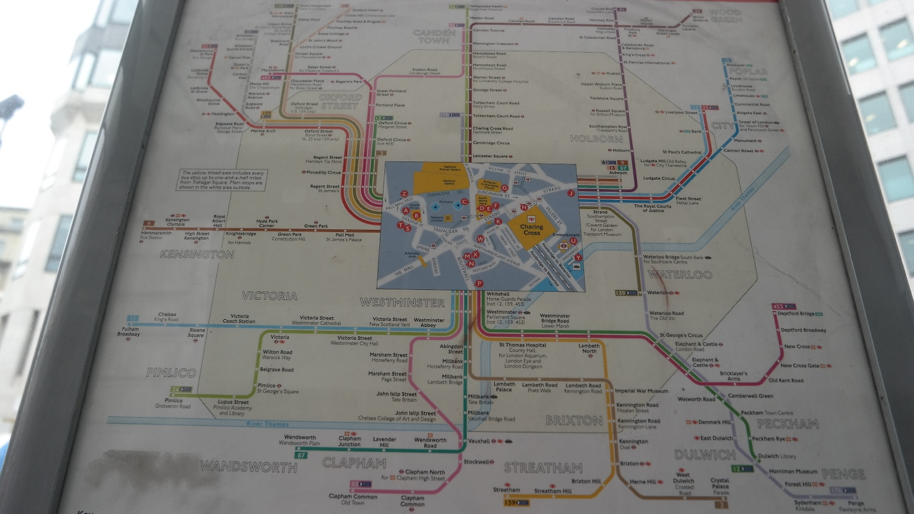 그건 아마 이방인의 시선이라 그러리라 짐작한다. 그다지 깔끔하지 않더라도 그들만의 질서와 규칙으로 맞물려 돌아가는 흐름이 있을 것이다. 하지만 런던이라는 대도시의 네임밸류에는 좀 맞지 않는 산만함이라는 생각도 들었다. 지도상에는 먼 거리가 아니었는데 버스는 많이 돌고 있었다.