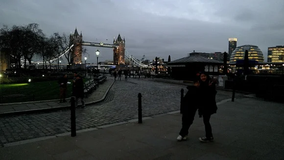 고전적인 느낌을 주는 타워브리지는 아직도 옛날 마차들이 지나다닐 것 같은 고풍스러운 외관을 간직하고 있었다. 주위가 어두워지면서 타워브리지에 전등이 켜지자 주변 사람들 모두 '와~' 탄성을 질렀다.