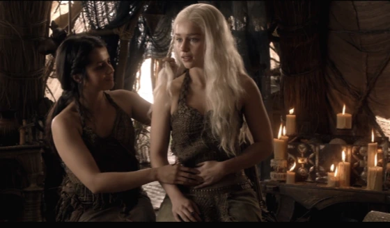 그때 꽤나 야시시(=_=*)한 장면도 나오고 대너리스가 드로고의 아이를 품게 되어 자신감을 얻는 장면도 나오는데 말이다.