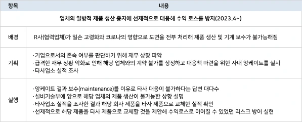 3. 업체의 일방적 제품 생산 중지에 선제적으로 대응해 수익로스 방어