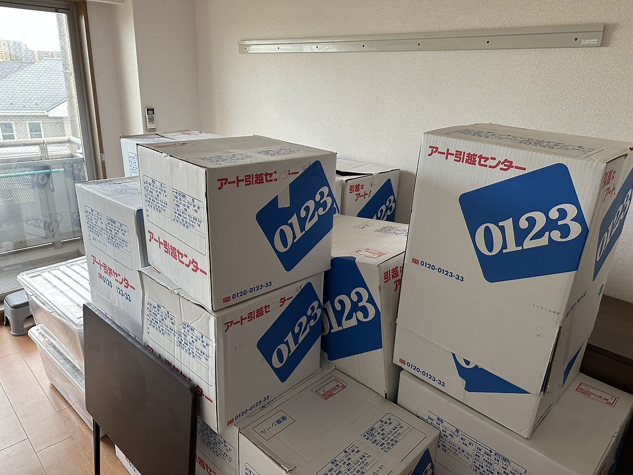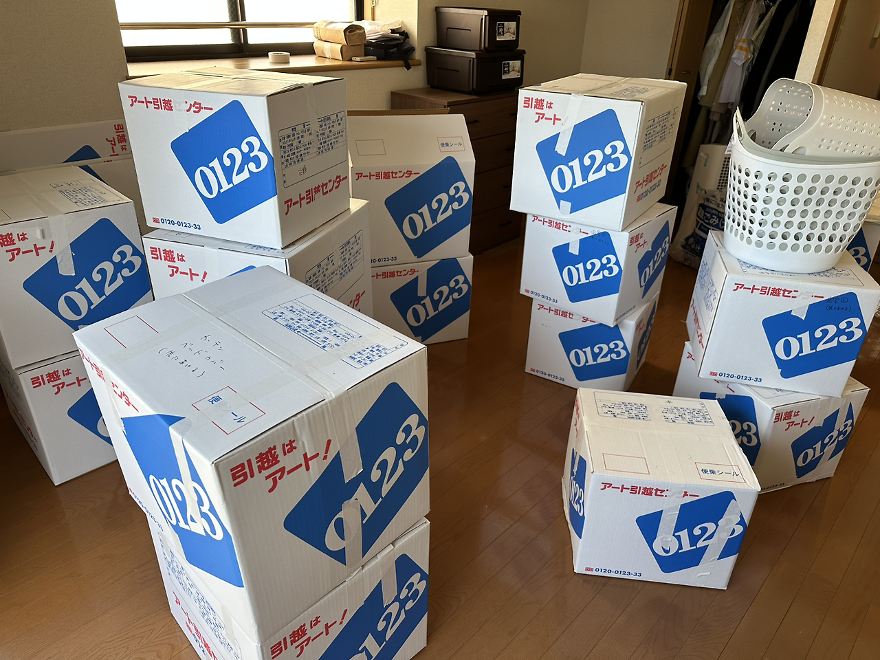 대부분의 물건들은 업체가 오기 전날 박스에 짐들을 넣어두었다. 넉넉하게 계산해서 큰 박스 10개, 작은 박스 10개를 荷物下見(이삿짐 견적 사전조사) 때 미리 받았는데 그중 17개를 사용했다.