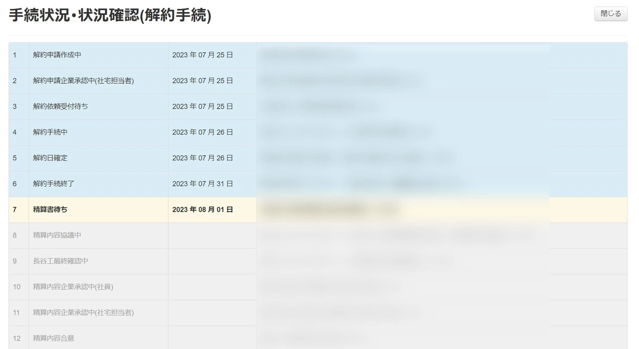 주거신청과 함께 현거주지 해약신청도 함께 진행한다. 퇴거 통보는 이사 한 달 전에는 집주인에게 알리는 것이 원칙이므로 발 빠르게 움직이자. 나는 회사 임대 기숙사(賃貸寮)에 살고 있기 때문에 회사에서 안내받은 社宅NAVI 홈페이지에서 온라인으로 해약신청을 진행했다.