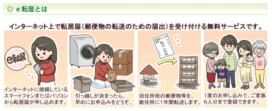 이사 후 기존 주소로 오는 우편물을 새로운 주소로 보내주는 무료 서비스가 있다. 우체국을 직접 방문하거나 인터넷으로 기존 주소와 새 주소를 입력하고 서비스 개시일을 지정할 수 있다.