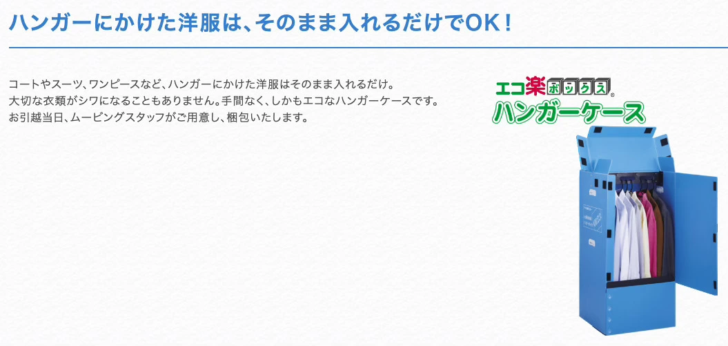 예약했던 시간에 맞춰서 젊은 남자 두 분이 짐을 빠르게 옮겨주셨다. 신기했던 게 일본에는 이동용 행거 케이스(행거 박스)라고 해서 코트나 원피스 같은 옷걸이에 거는 옷들을 박스가 있다. 옷장 옷들을 개서 박스에 넣을 필요 없이 옷걸이 채 그대로 배송할 수 있다.
