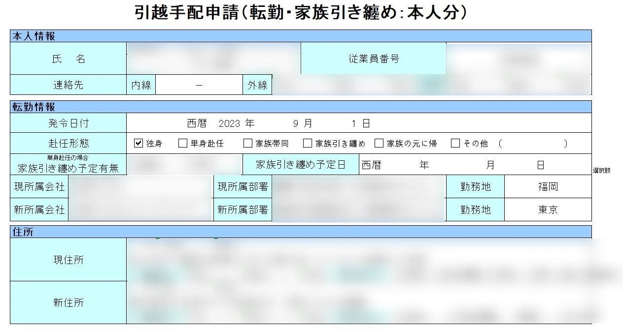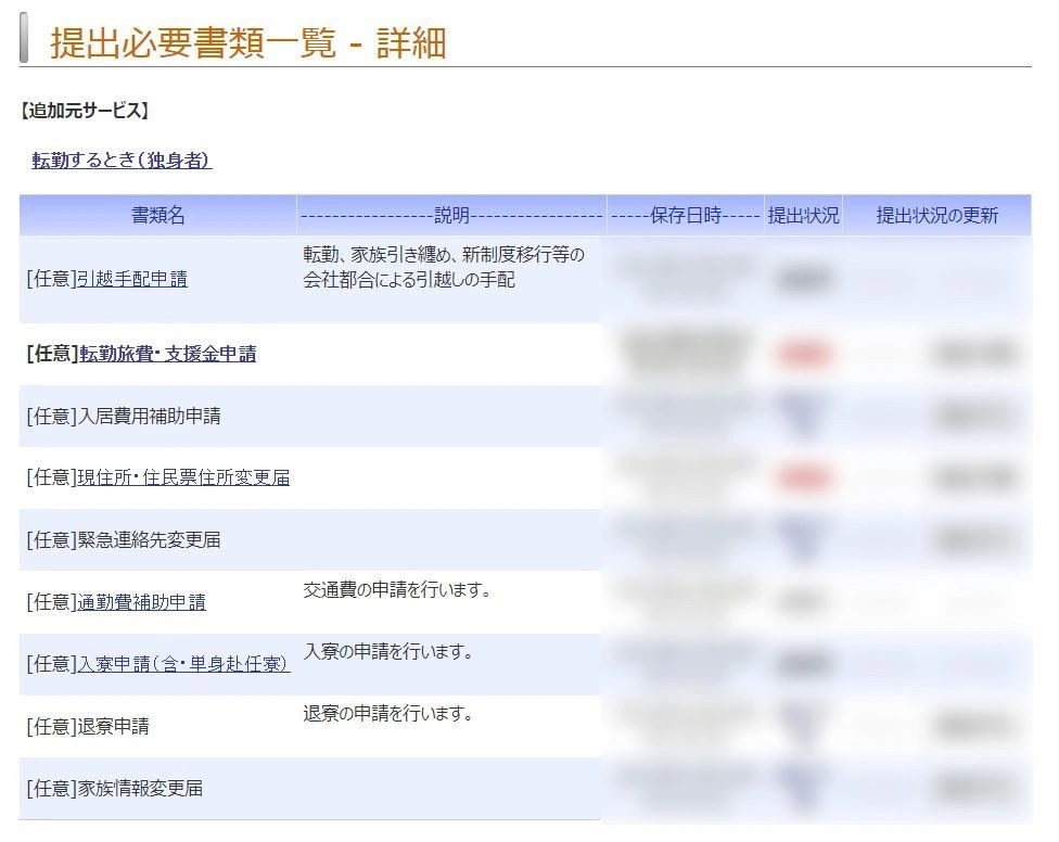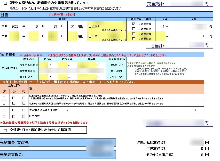 전근여비·지원금신청(転勤旅費·支援金申請)