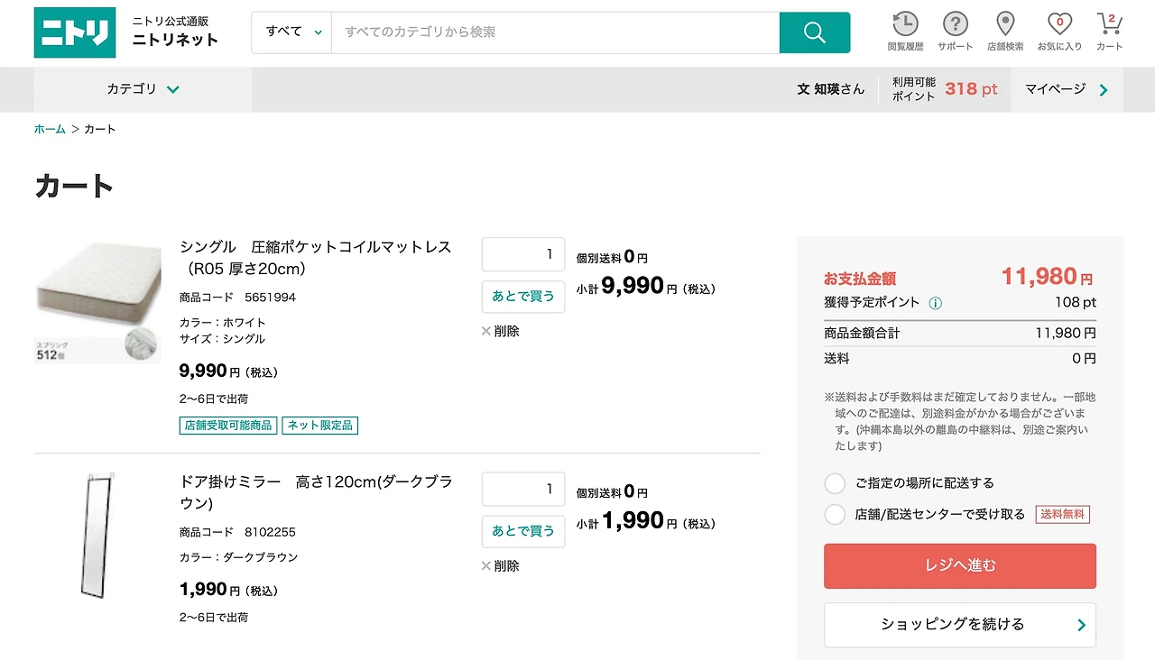필요한 가구는 대부분 니토리(ニトリ)에서 구입했다. 일본판 이케아 같은 곳인데 11000엔 이상 온라인 주문을 하면 배송료가 무료다. 배송희망일시도 선택할 수 있으니 입거일에 맞춰서 미리 배송신청을 하면 편하다.