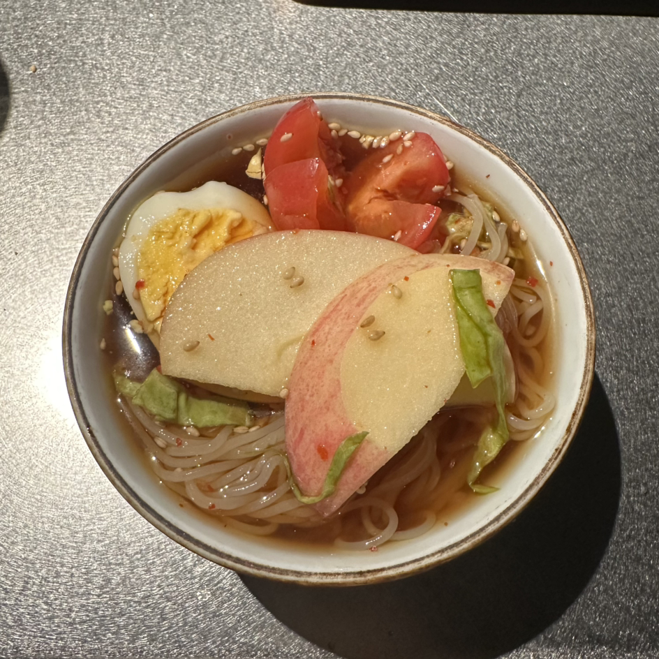 냉면 처돌이는 중국 양꼬치집에 와서도 냉면을 먹는다. 사과가 올려져 있는 게 좀 생소했지만 김치만 아니면 된다. 이것도 맛있다.