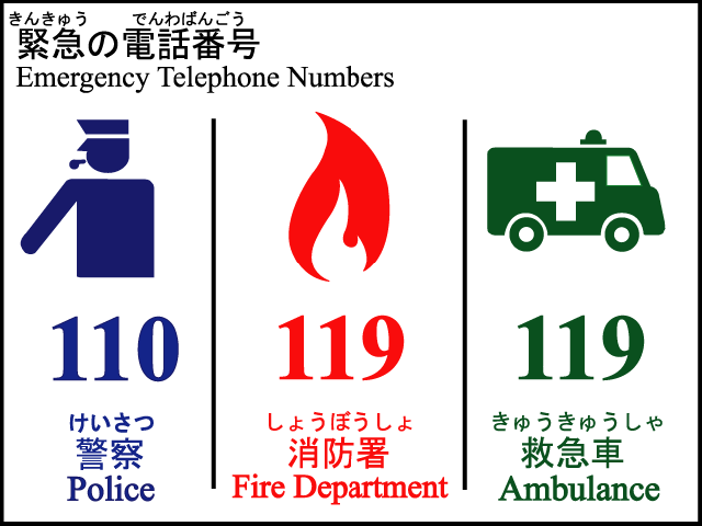 ✔ 소방서 119(원칙적으로 일본어만 대응)
