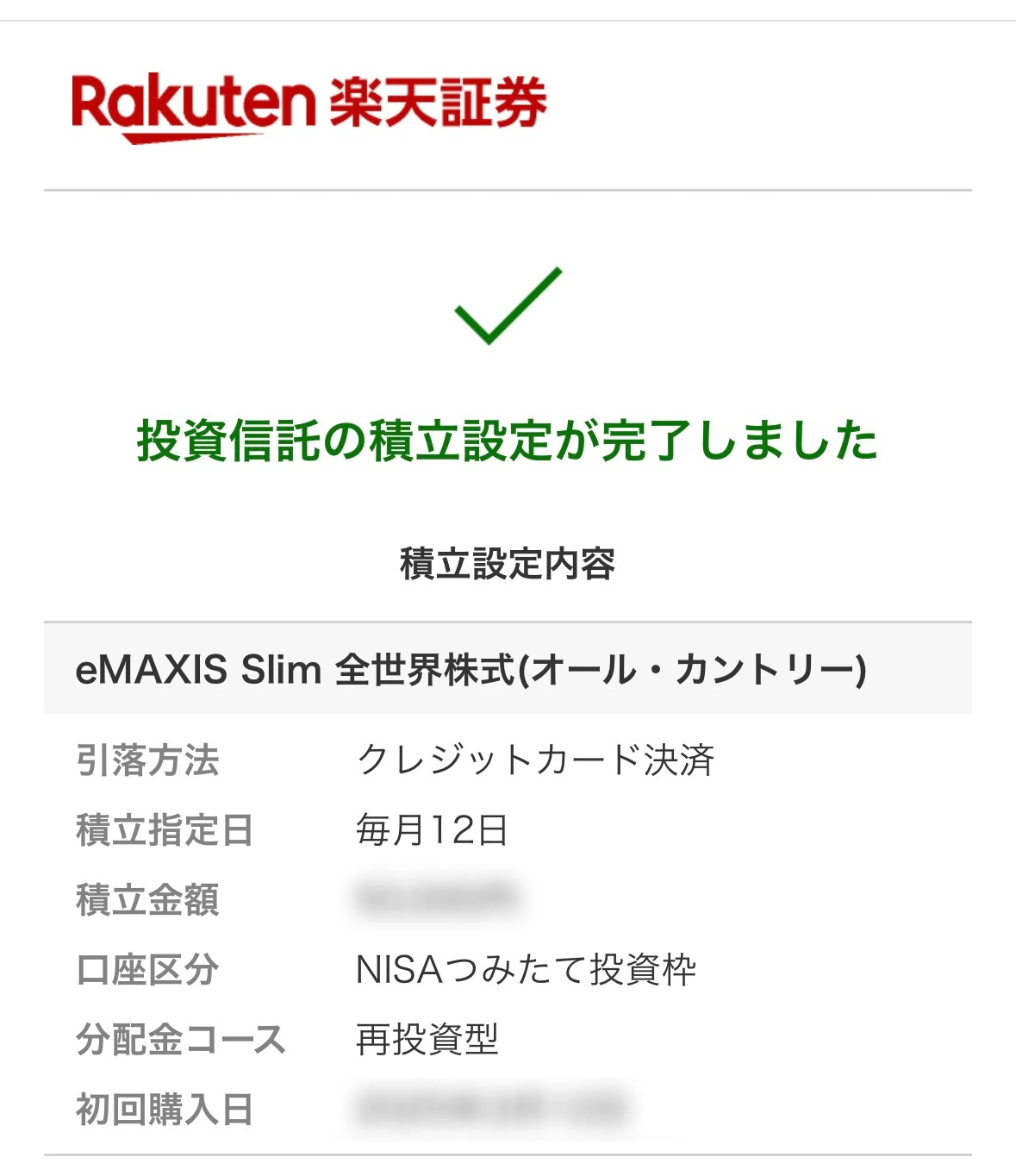 나의 경우에는 라쿠텐 카드 결제로 적립투자(クレカ積立)를 하고 있다. 초기 설정만 하면 자동이체라 수고로운 절차가 없고, 결제액에 따라 라쿠텐 포인트가 부여되는 메리트가 크기 때문이다.(단, 적립 설정의 상한은 100,000엔)