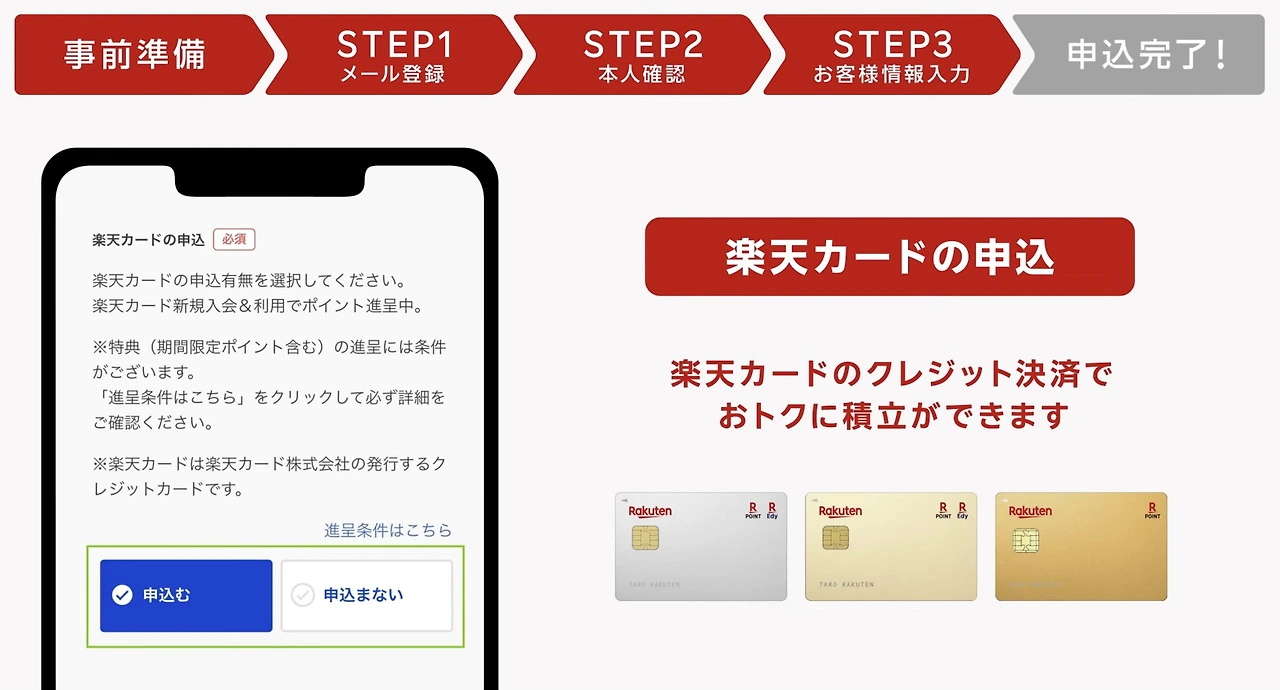 NISA 계좌개설 시 라쿠텐 신용카드 발급도 동시에 신청이 가능하다.