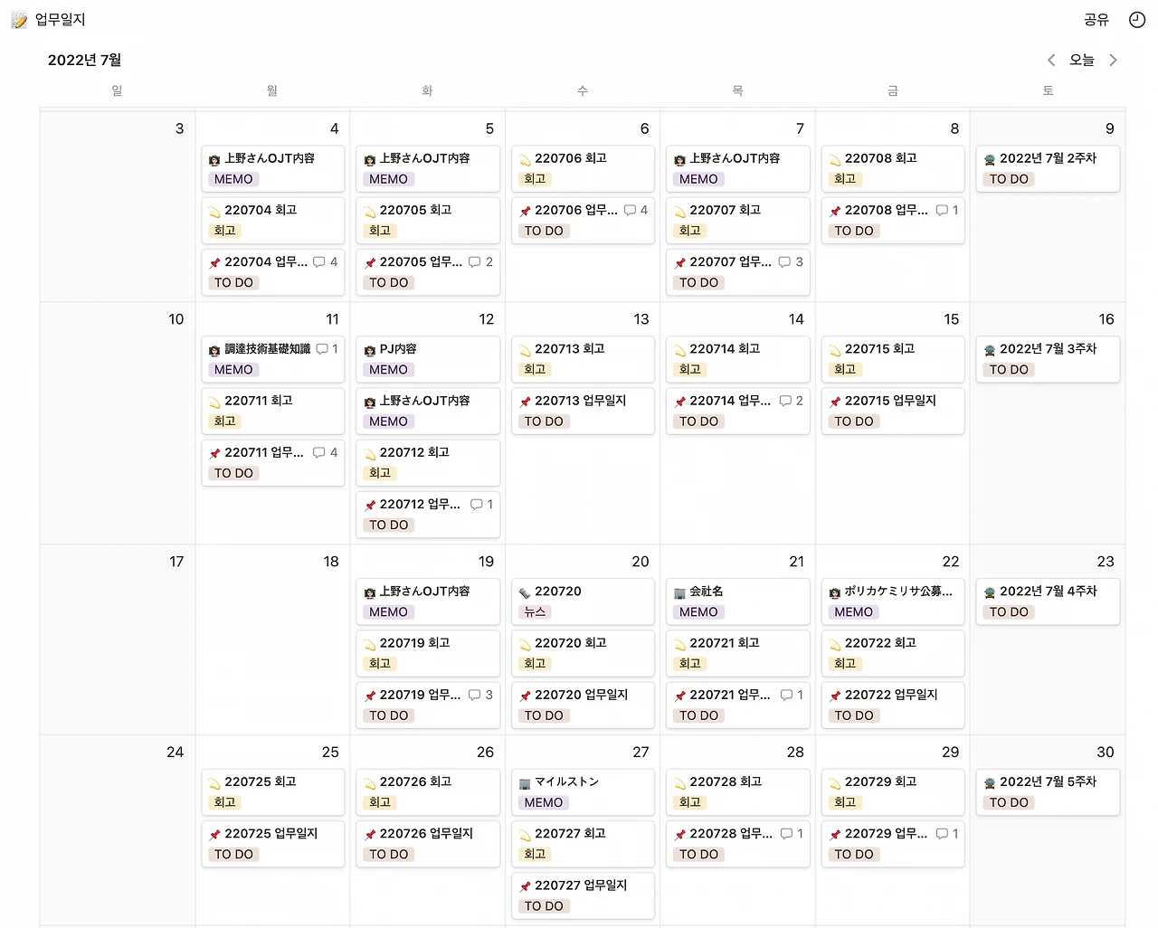 처음에는 일지를 작성하는 데 너무 시간이 많이 걸려 귀찮게도 여겨졌었는데, 실제 일을 하면서 그 당시에 쓴 일지를 보고 도움을 받을 때가 많다. 그래서 지금도 개인적으로 매일 업무일지를 작성해, 출근해서 어떤 일을 했고, 진행 상황은 어떻게 되는지 등을 기록해 남겨두고 있다.