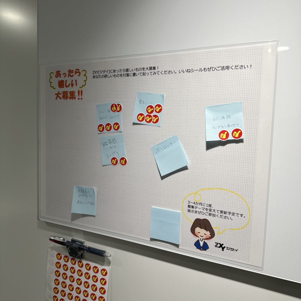 과자류가 구비되어 있었으면 좋겠다는 메모에 나도 슬쩍 스티커..(?)