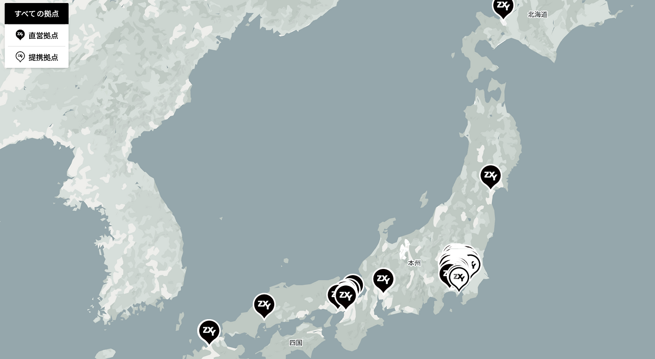2025년 1월 기준으로 전국에 400여 개의 지점이 있다. 다만 대부분이 위 지도처럼 도쿄 근처 수도권에 집중되어 있기 때문에 사업장 근무자나 지방 출장의 경우에는 사용에 제한이 있다는 인상이 있다.