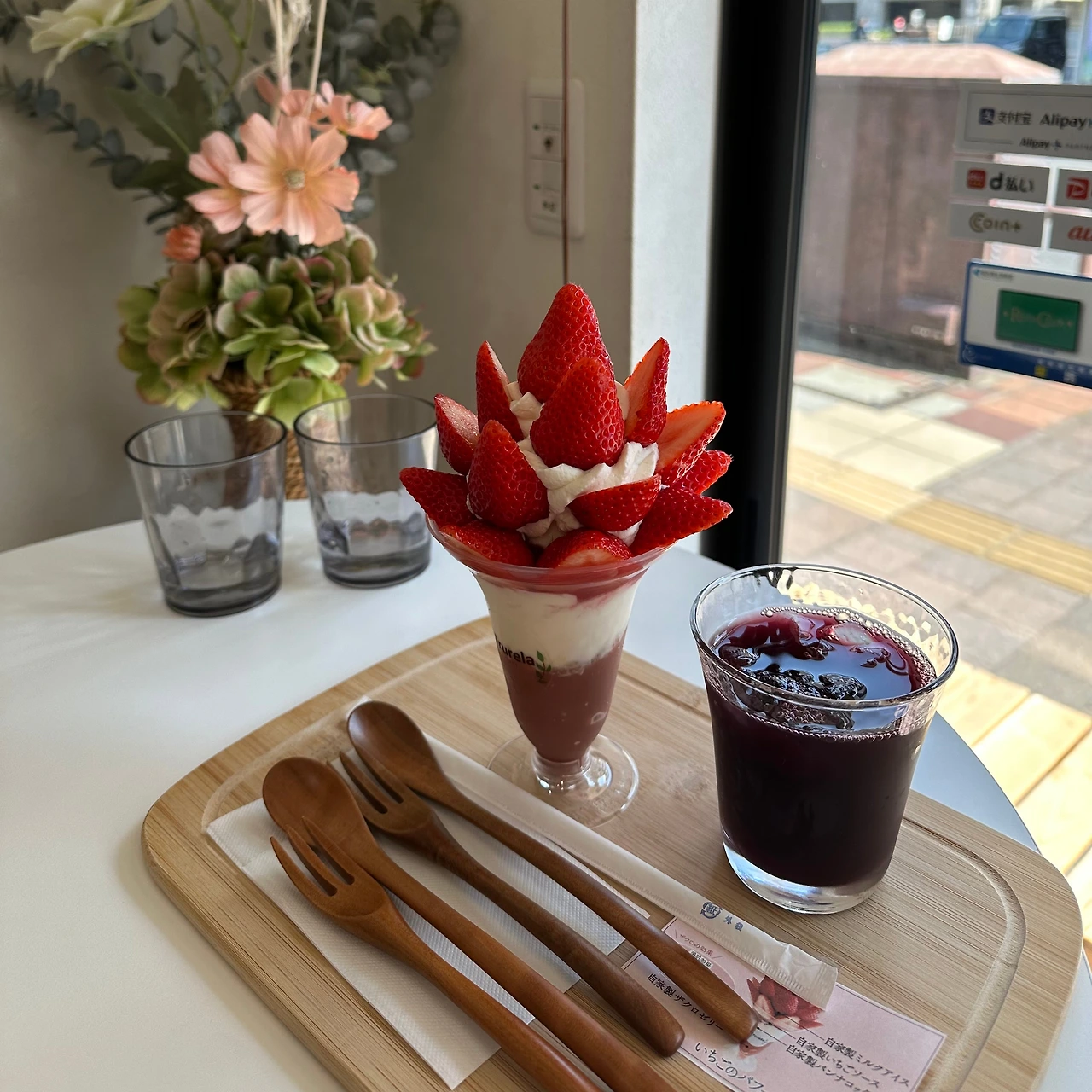 든든히 배 채웠으니 디저트를 먹어야지. 오카야마 파르페 맛집이다. 무농약, 무첨가를 원칙으로 하는 가게라 오카야마 관광청에도 소개된 맛집이다. 내가 방문했을 땐 복숭아가 없어서 딸기 파르페로 주문했는데 이것도 맛있었다! 다음에 복숭아 파르페 먹으러 또 와야지. 날씨도 좋고 파르페도 맛있고.. 행복 별거 없다.