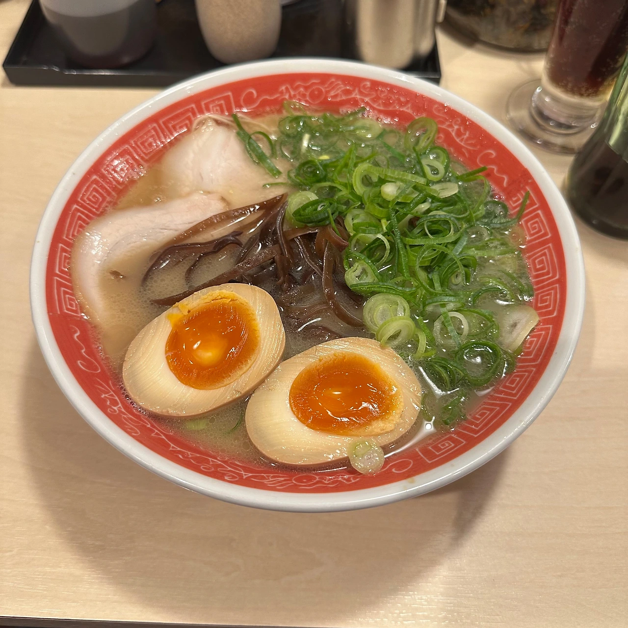 갑자기 돈코츠 라멘이 먹고 싶어서 찾아간 곳. 오카야마 와서 하카타 라멘 먹는 나 어떤데.. 후쿠오카만큼 진한 국물은 아니었지만 맛있었다.