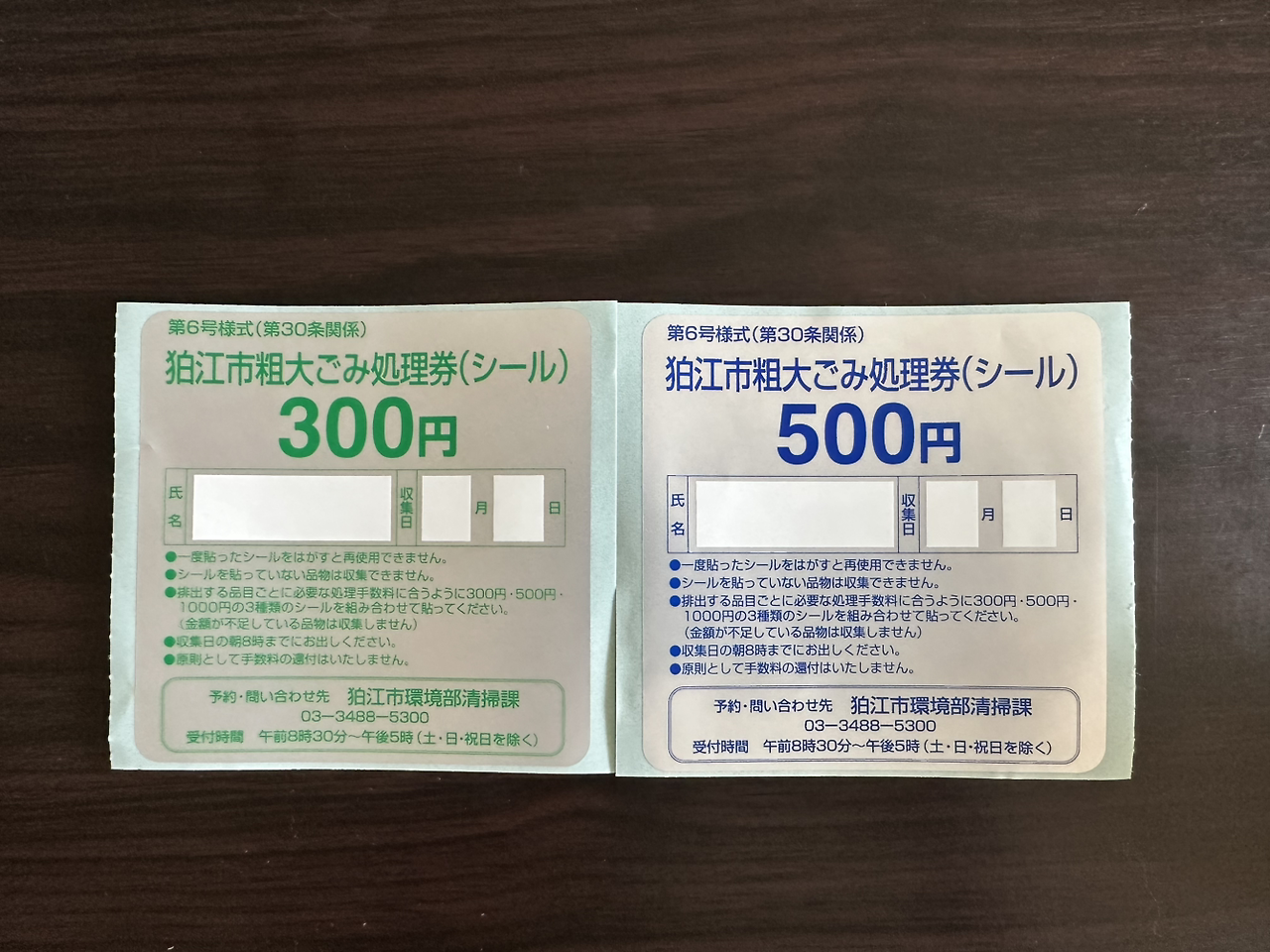 폼에서 신청한 이름과 처리권에 기재하는 이름은 일치시키는 것이 좋다. 고마에시의 경우 신청 시 성명 기재가 가타카나만 가능해서, 신청권에도 가타카나로 작성했다. 청소과에 사전 연락한다면 처리권에는 이니셜 기재도 가능하다.
