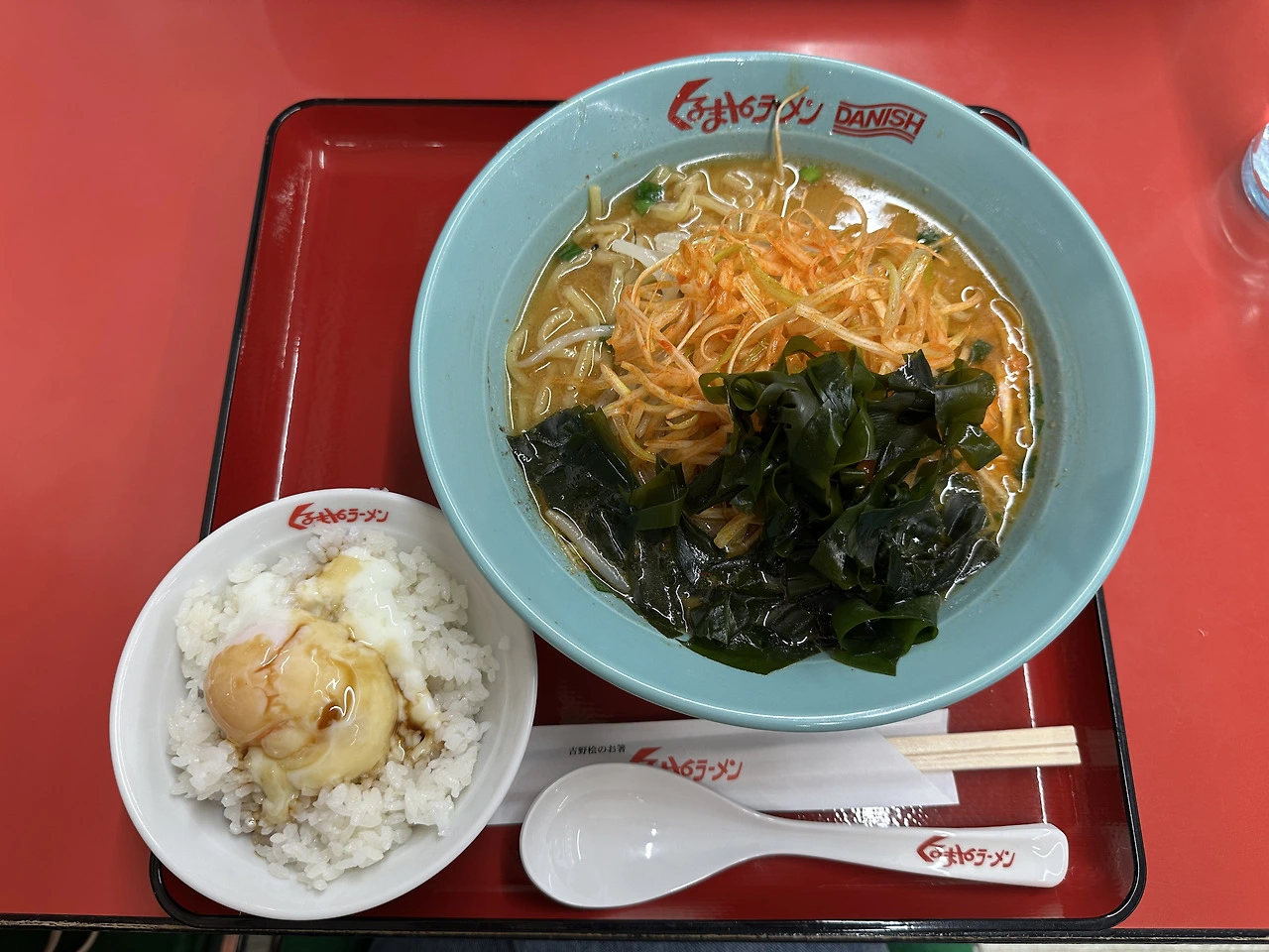 하루 종일 신나게 놀아서 진짜 피곤했는데 그래도 라멘은 먹겠다고(?) 근처 쿠루마야 라멘에 들렀다. 이참에 단골 맛집 공유하기.. 네기미소라멘에 미역 추가했고, 사이드로 온타마 라이스도 함께 주문했다.