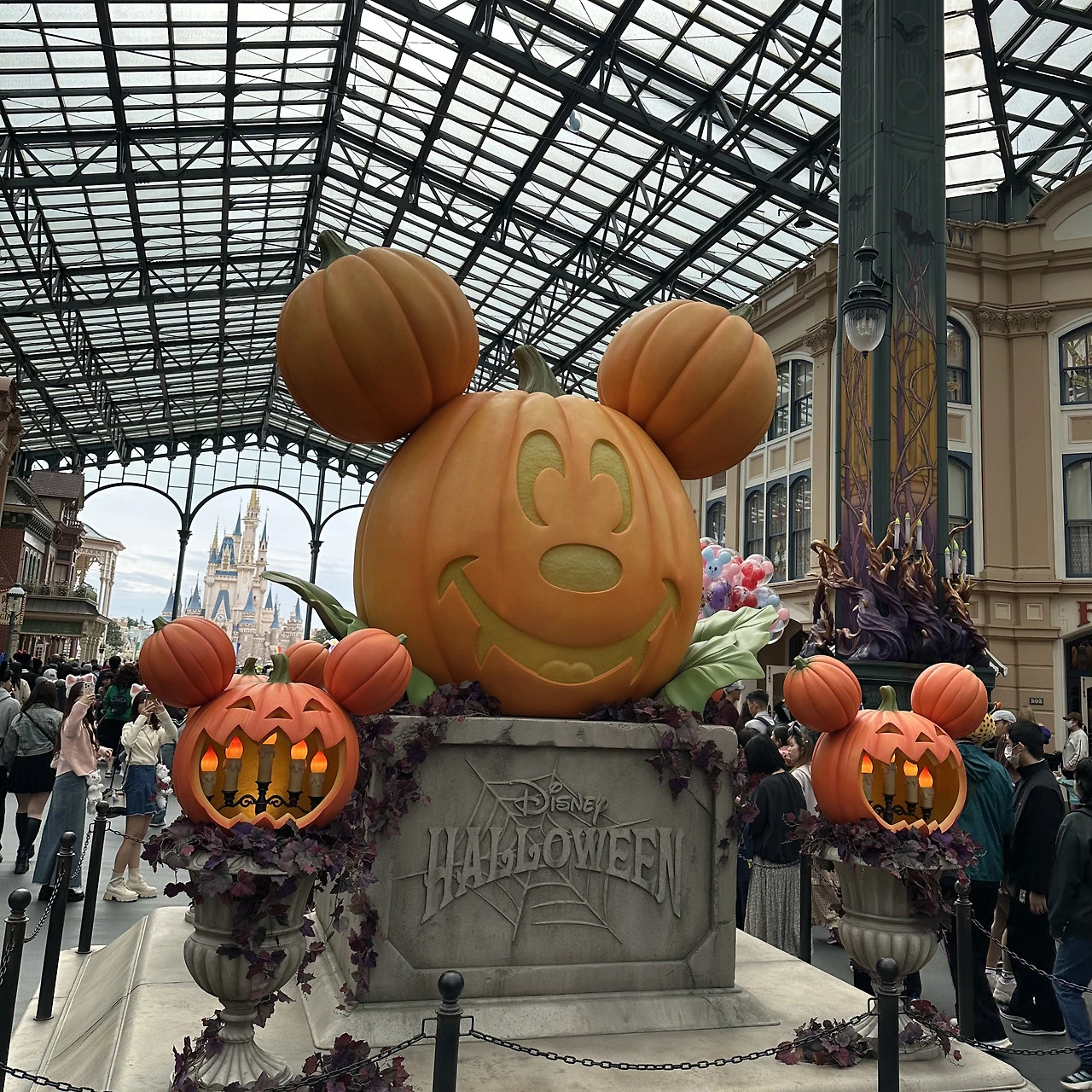 간단한 짐 검사를 마치고 디즈니랜드 입장! 마침 할로윈 시즌이라 입구부터 구석구석 할로윈 포인트가 가득했다. 입구부터 울려 퍼지는 디즈니 음악에 꽤나 설렜던 나..