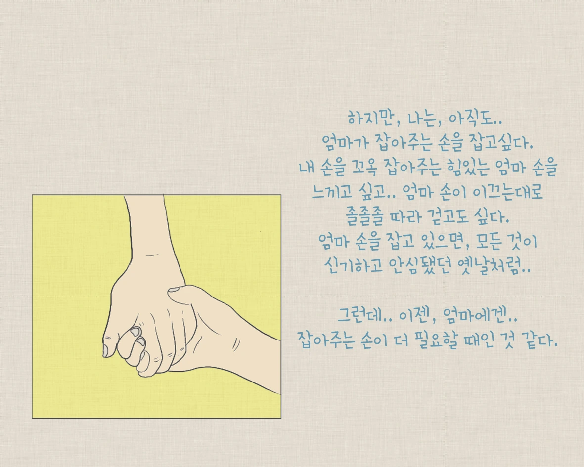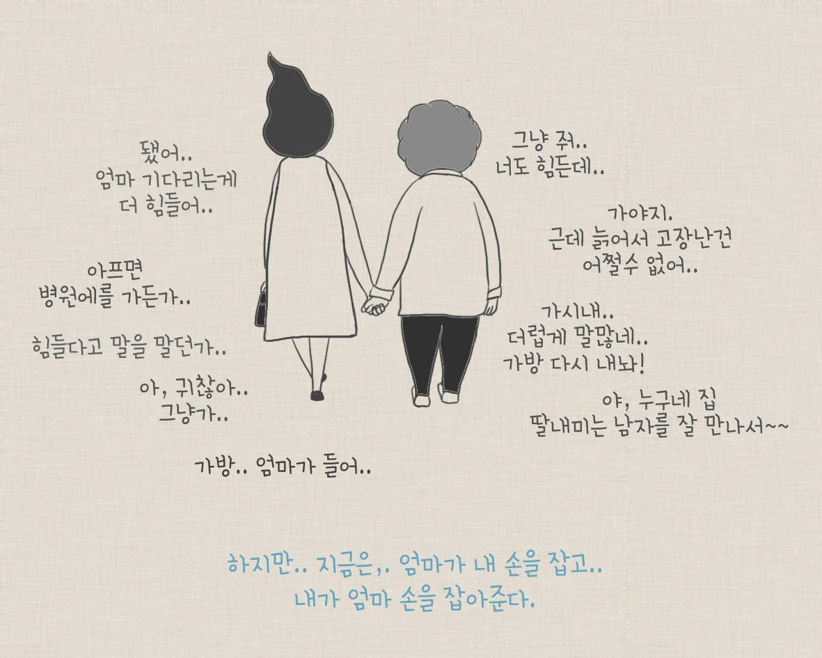엄마랑 손잡고 오래오래 걷고 싶다.