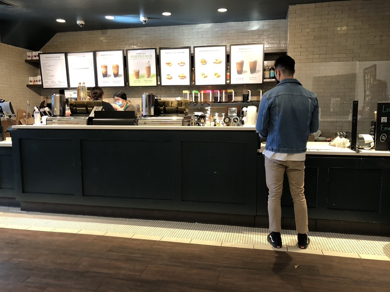 이 날 따라 난 햇고구마며 배추 한 통, 무 한 개 이렇게 무거운 아이템을 사서 이고 지고 걷다 보니 마스크의 훅훅거리는 숨이 온몸을 달구는 느낌이 들어 차가운 커피 한 모금이 아주 간절해졌다. 입 안이 쩍쩍 달라붙는 느낌이다. 마침 이 스타벅스가 앞에 보이는데 마감이 10분이 남았다. 아, 애매하다. 하지만 일단 들어갔다.