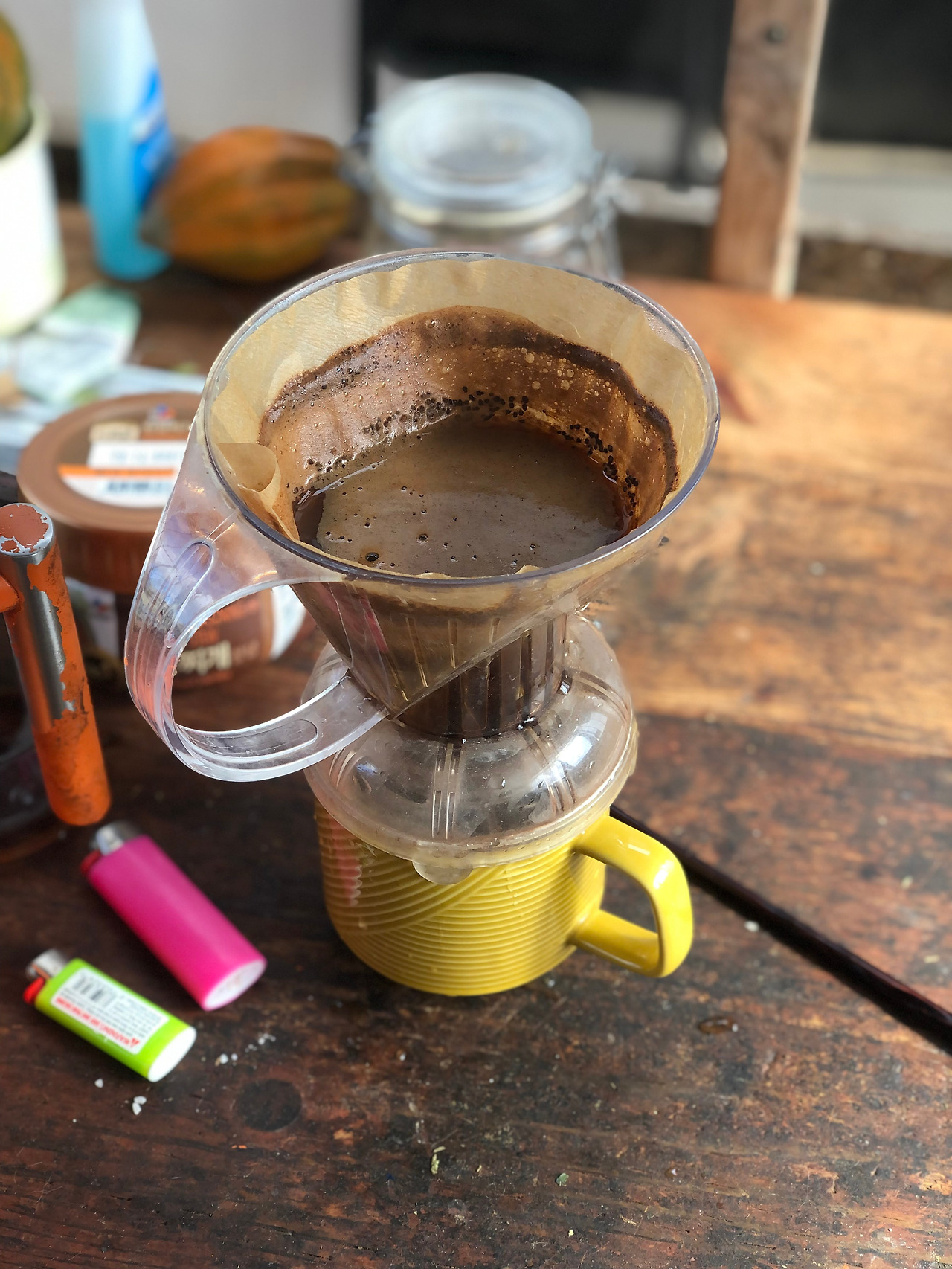 로지는 일단 줄만 보면 가지고 놀려고 하기 때문에 얼른 원두를 갈고 그걸 드립 틀에 탈탈 털고는 치워야 한다. 안 그러면 줄에 걸린 테이블 위의 책, 휴대폰, 드립 틀, 컵 모두 바닥에 나뒹군다. 매의 눈으로 날 지켜보는 로지는 트러블을 일으킬 구실만 찾고 있다. 진상이다.