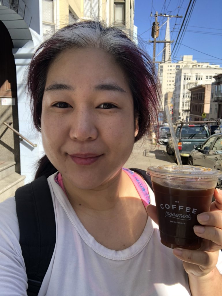 하며 마스크를 내리고 얼굴을 보여준다. 과연 익숙한 얼굴이다. 반갑게 인사를 하고 오늘은 Japan Town 가는 길이라 이 쪽으로 왔다며 인사를 했다. 그 남자는 지금 여기서 일한다며 직원 우대 에스프레소를 하나 받아 들고 갔다.