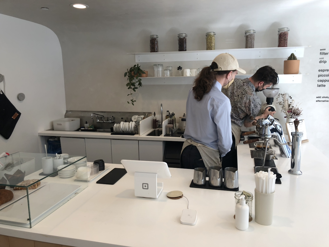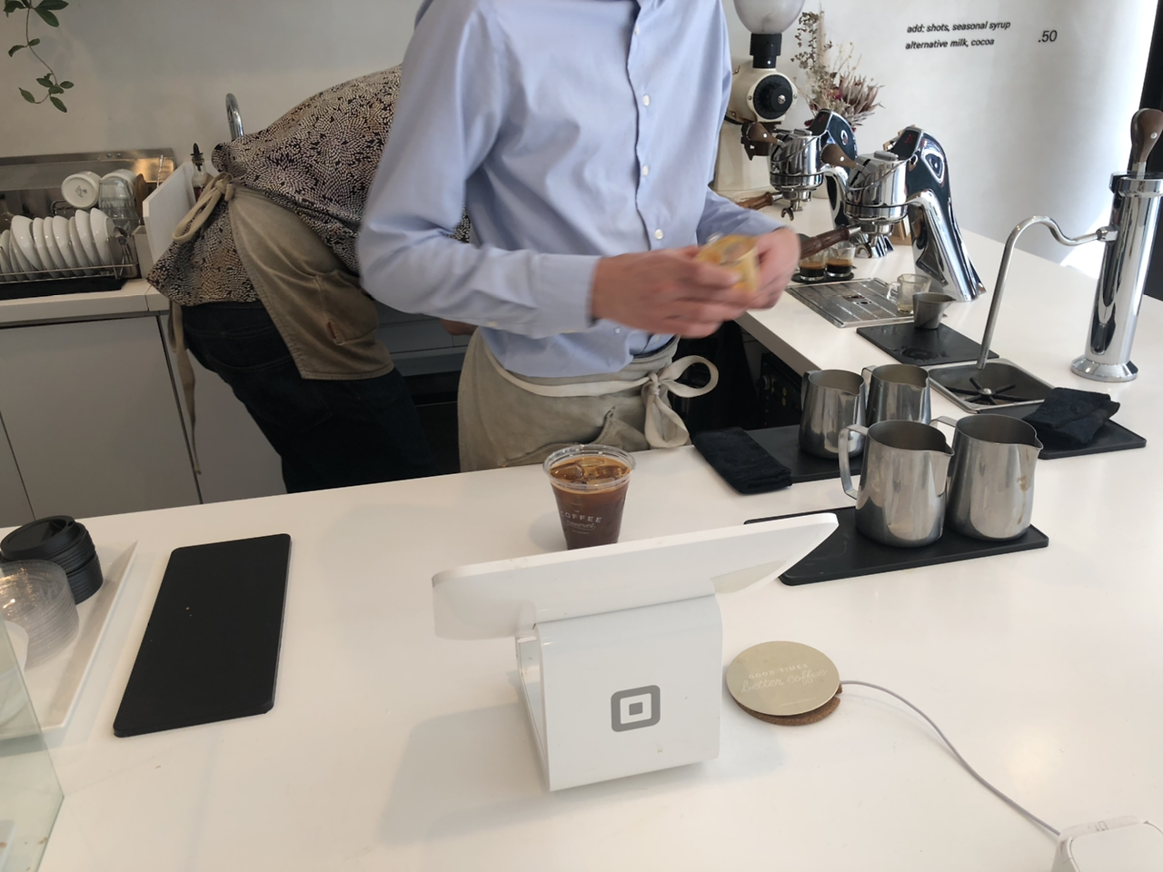 안의 주문하는 손님과 계산하는 손님이 있어서 내 차례를 기다렸다. 가게가 좁아 ㄴ 자의 카운터에 한 명은 주문받아 커피를 만들고 그 손님이 주문 후 다른 면으로 넘어가 계산하는 시스템이다. 그래서 주문하는 손님, 계산하는 손님 두 명 중 한 명이 빠지면 다음 차례 손님이 들어간다.