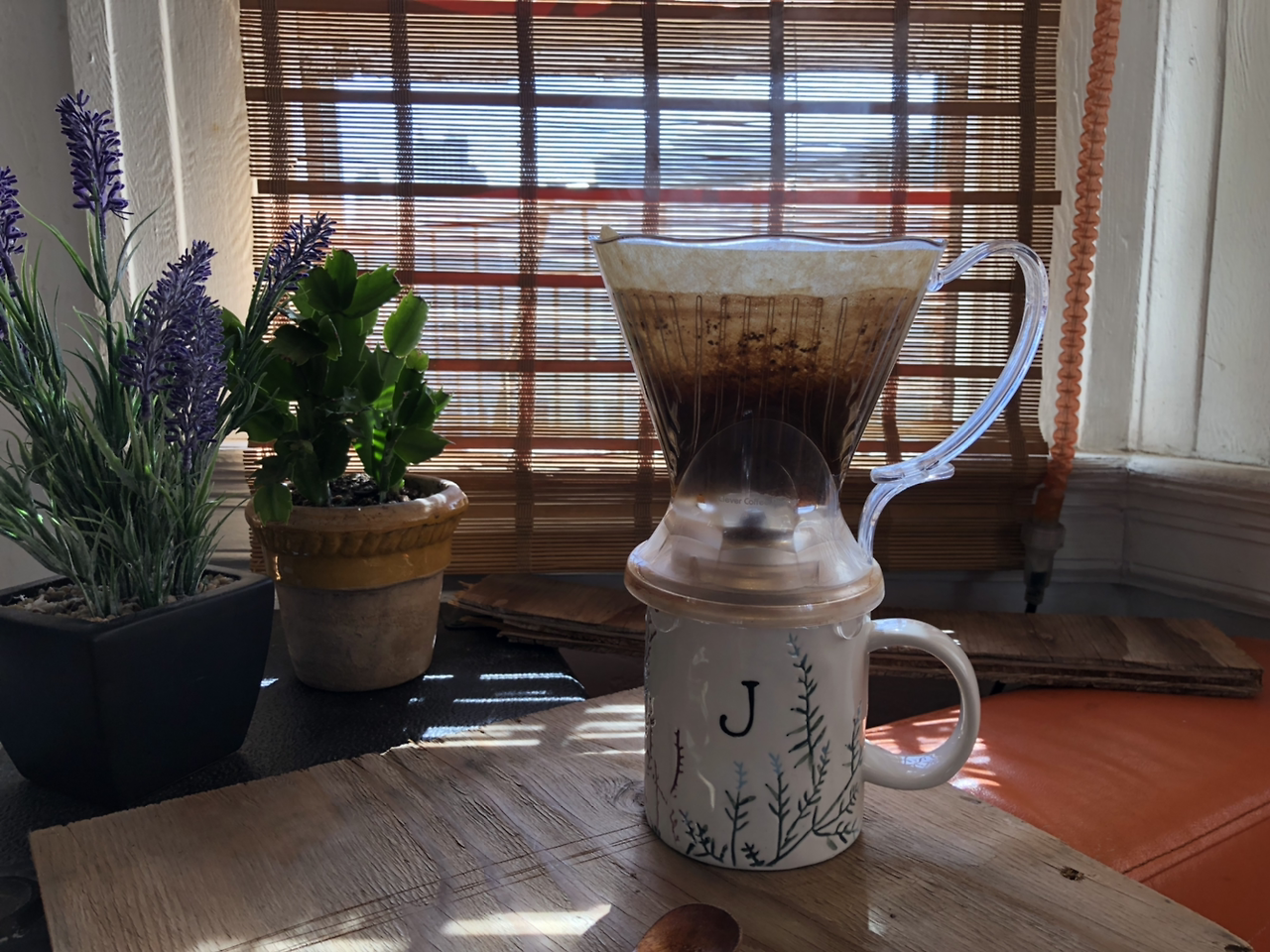 내 드립 틀은 커피가 바로 내려오지 않는다. 클레버라는 회사의 제품으로 Four barrel이라는 커피 전문 체인에서 핸드드립 강좌를 받을 때 탐나서 사 온 물건이다. 이 틀을 커피잔 위에 올려놓으면 모인 커피물이 한 번에 쪼륵- 하고 내려온다. 커피물이 쭉 내려오는 보글보글하는 모양과 모인 커피가 순식간에 내려와서 틀 안에 수위가 낮아지는 것도 보는 재미가 있다. 소리는 또 어떠한가? 그 짧은 몇 초에 힐링이 따로 없다.