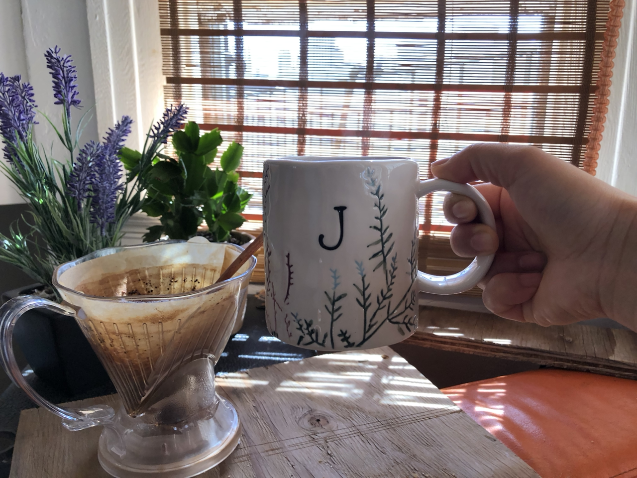 커피를 내리는 즐거움 중에 하나는 또 이 컵이다. 내 이름 이니셜을 딴 이 커피잔은 내가 아침에