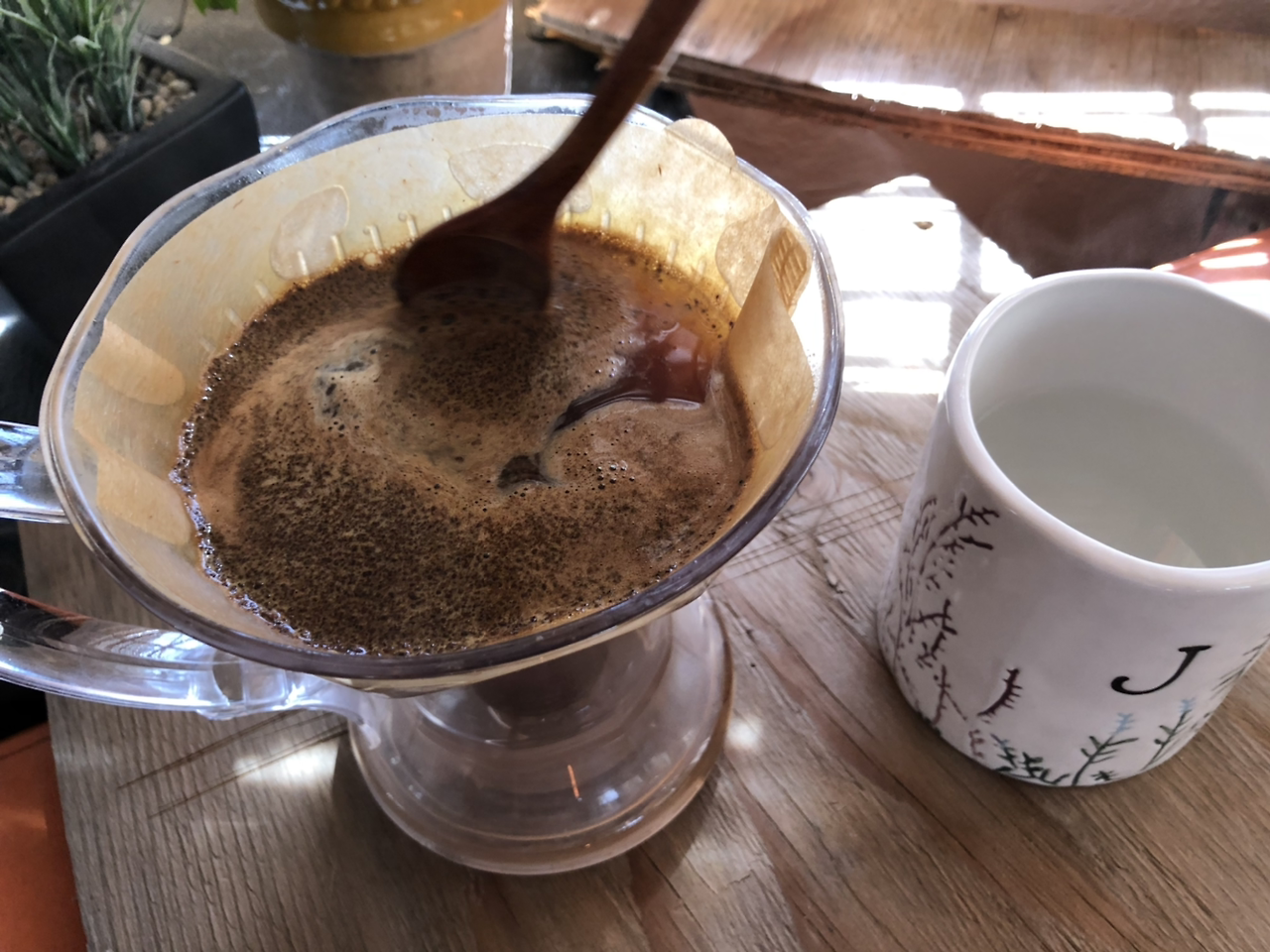 이렇게 컵을 데우는 사이 거품이 일어난 커피물을 휘휘 젓는다. 그저 내 즐거움이다. 이 과정이 커피를 내리는 정석에 맞지 않더라도 나는 이게 큰 즐거움이다.