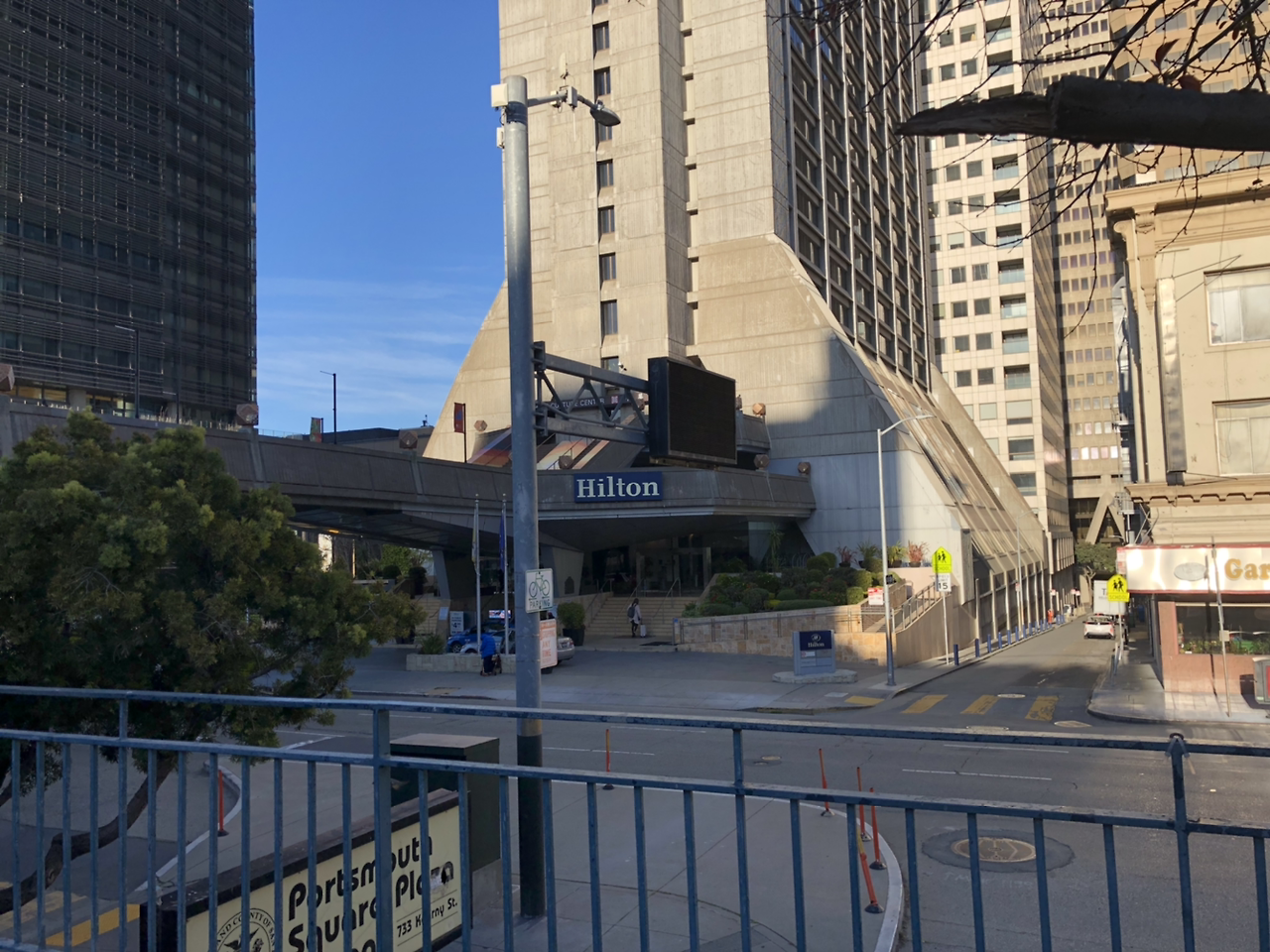차이나타운 공원 바로 맞은편에는 힐튼호텔이 자리 잡고 있다. 유니언스퀘어에 하나, 차이나타운에 하나 유명한 곳을 선점하고 관광객을 모은다. 이 호텔의 직원들 태반이 중국인이고 내부의 인테리어 역시 중국 스타일로 붉은색을 많이 사용한다. 직원들이 중국인이지 어떻게 아냐고? 퇴근길 팔랑이며 걸어오는데 여기서 나온 직원 한 명과 얘기를 하게 됐다. 중국인이라며 자기가 일하는 힐튼 호텔 내 레스토랑에 놀러 오라고 한 적이 있다. 발음이 어려워 이름이 ㅂ으로 시작한다는 거 외 기억이 안 난다.