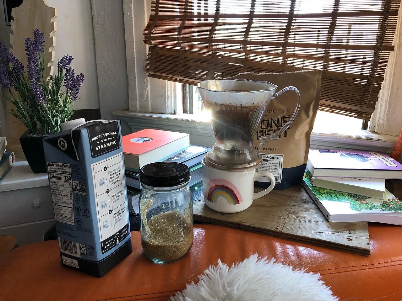 브라운 슈거 3 티스푼, 오트 밀크 쪼록.