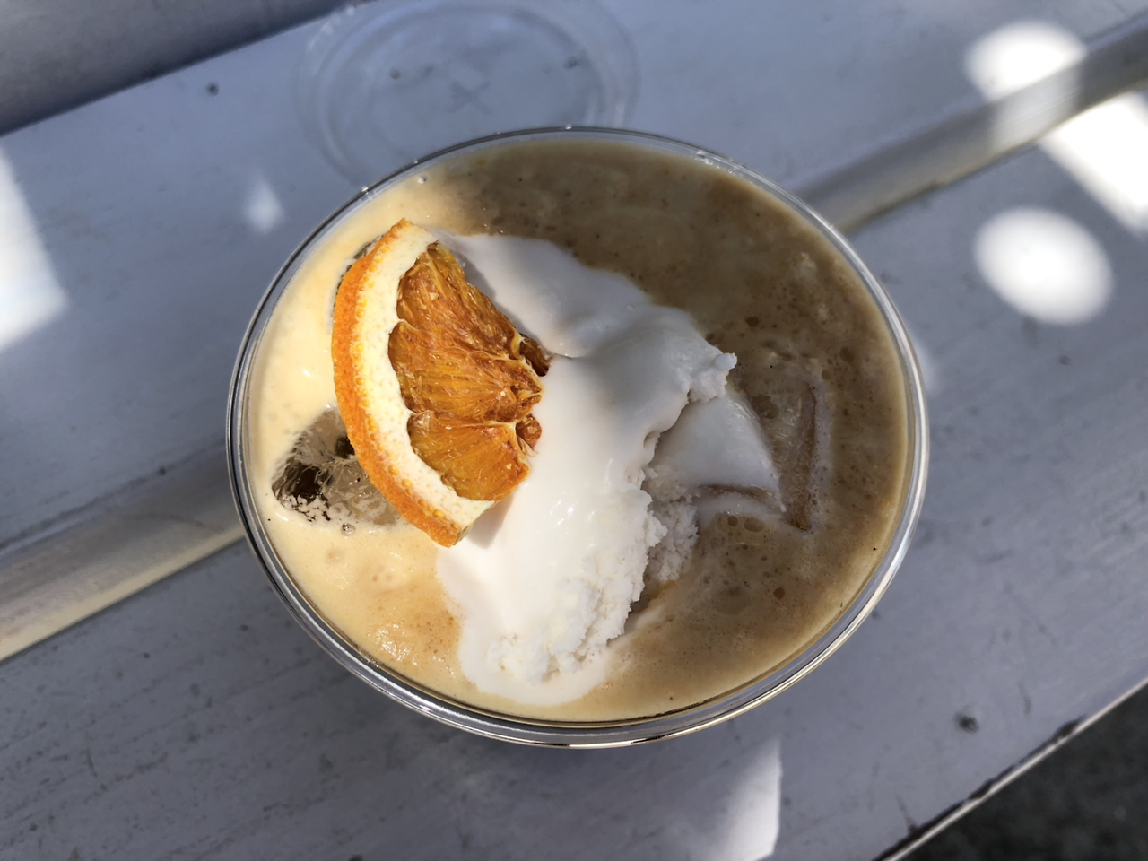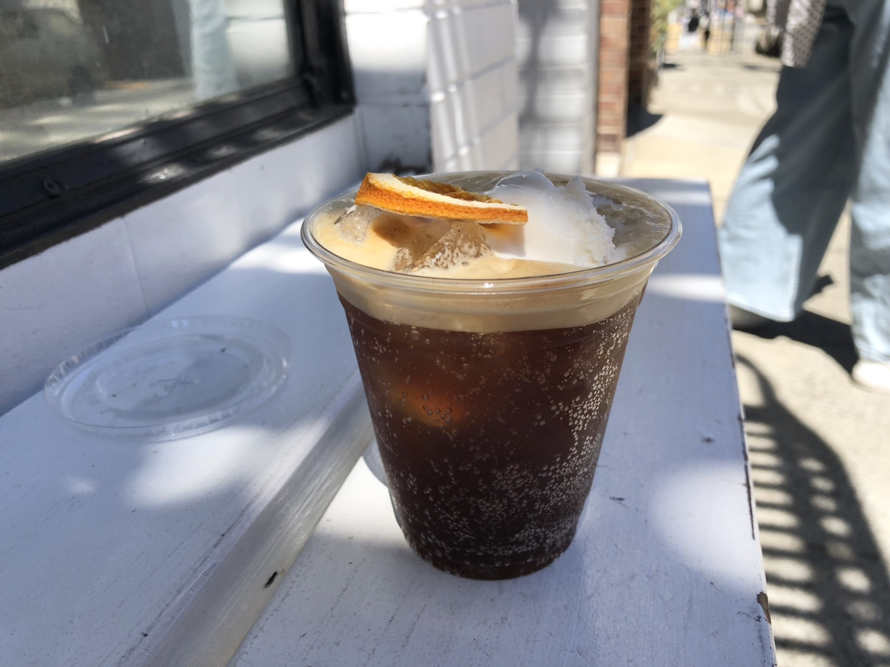 반쯤 얼음을 채운 컵에 2/3 정도가 찰 정도로 토닉워터를 붓는다. 그 위에 콜드 브루 커피를 두 샷 정도 채우고 그 위에 슈가 크림을 한 스푼 푹 떠서 올린다. 말린 오렌지 한 조각 가니쉬로 마무리.