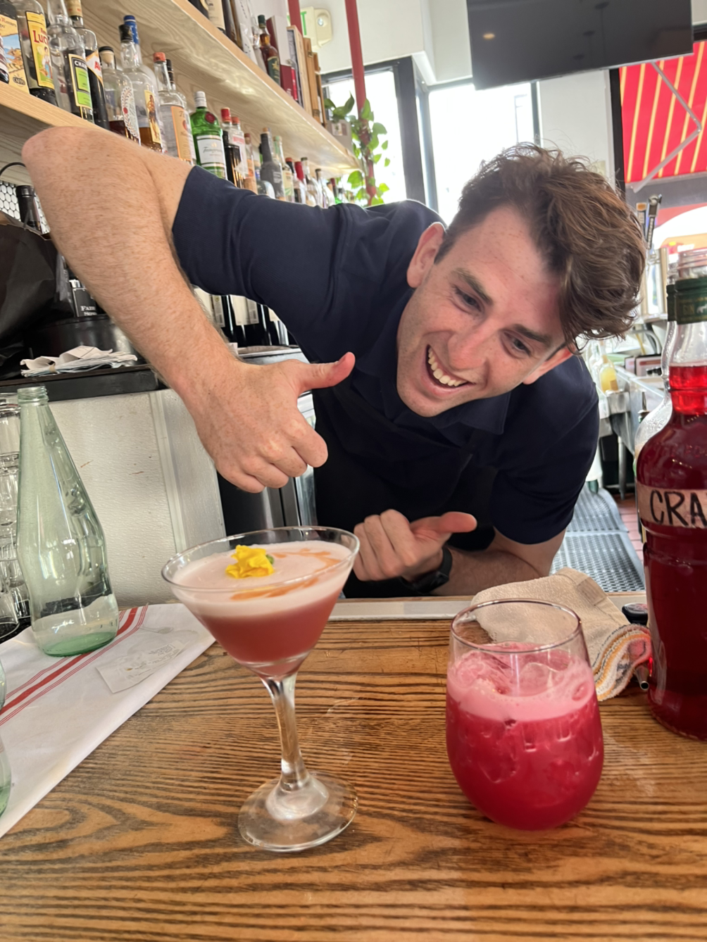 이런 식으로 한 번에 쭉 돌면서 주문을 받고 오면 이미 넣어놓은 음식이 날 기다리고 있고, 바에서는 칵테일 및 와인들이 줄줄이 대기 중이다. 주방에서 방금 나온 음식은 땡! 하고 울리는데 내것은 빨리 가져가라고 땡땡땡이다. 미친다.